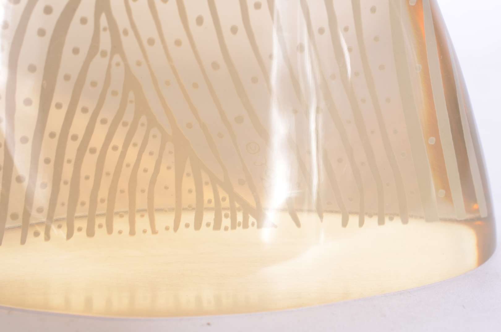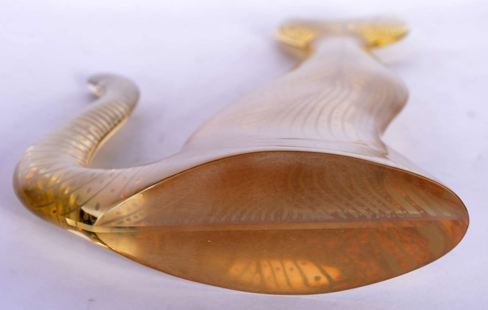 Escultura de marfim policromado representando figura feminina com aves nos ombros e bolsas penduradas com peixes.