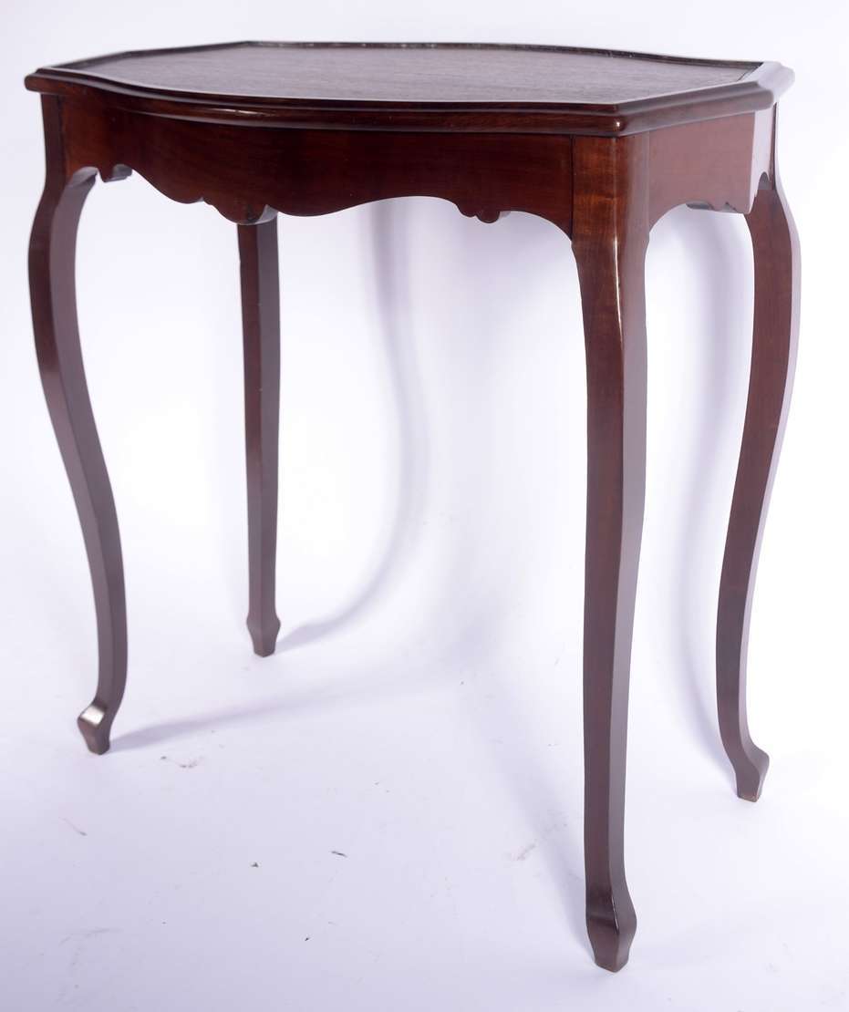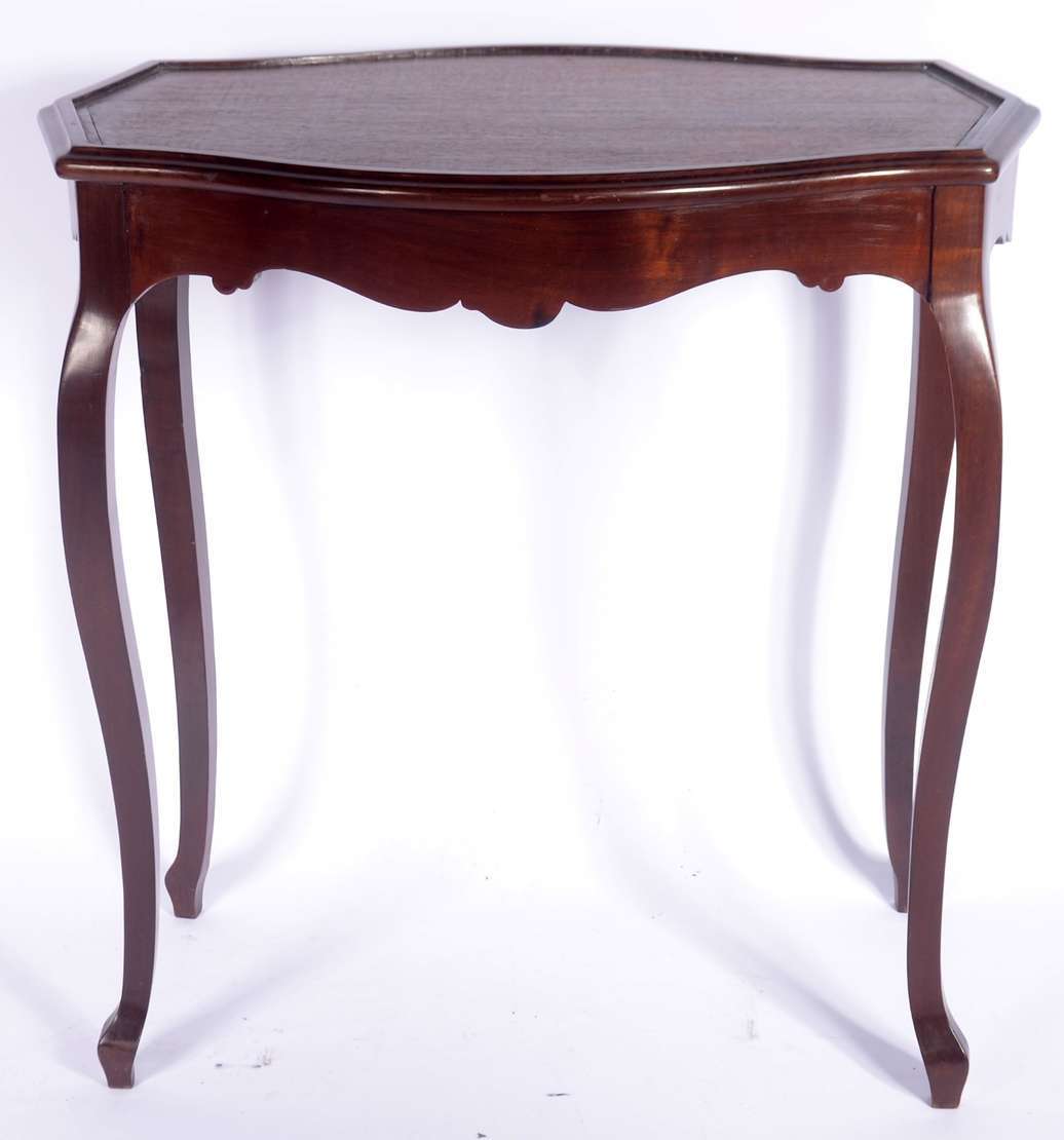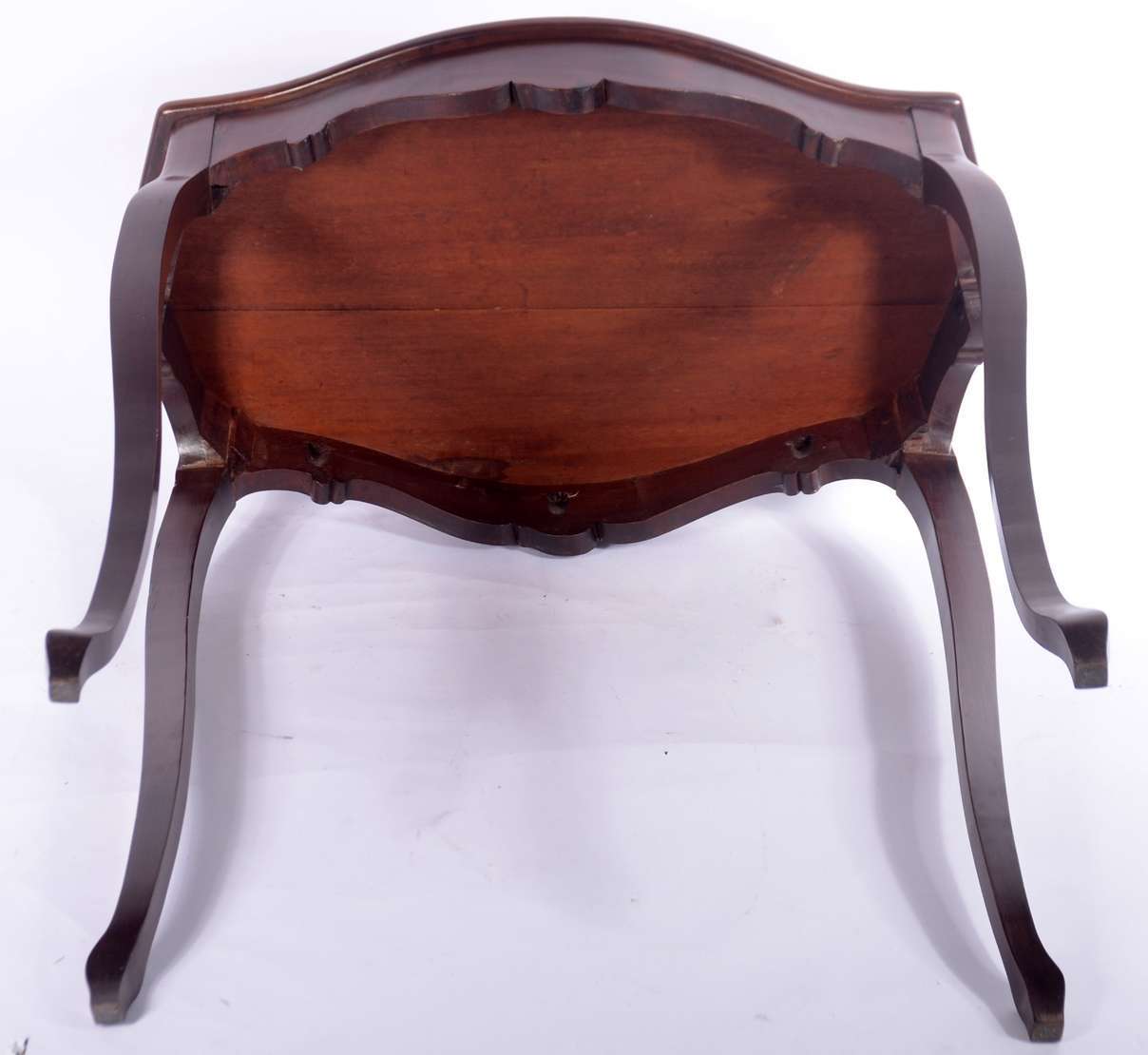 Mesa auxiliar "Cake table" de madeira nobre com 2 platôs, bordas recortadas e base na forma de tripé.