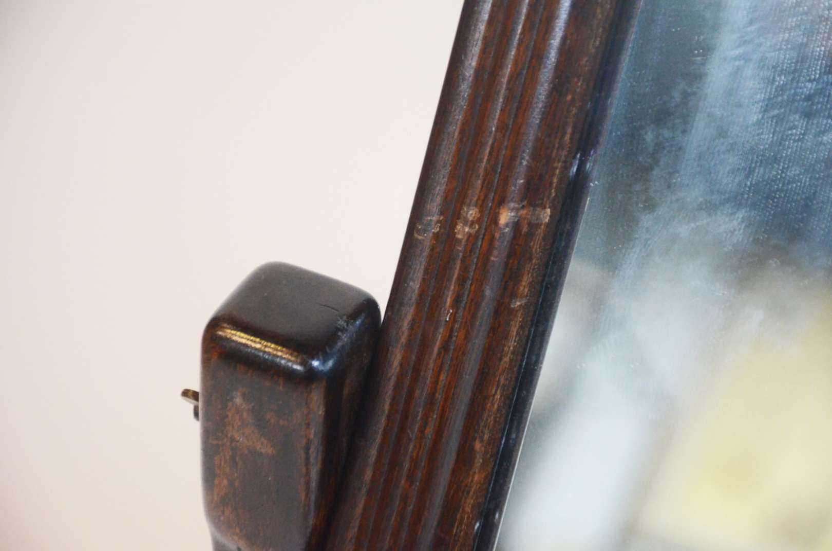 Penteadeira de madeira nobre, Art Deco, espelho central de cristal (manchas no espelho e pequenos defeitos na madeira).
