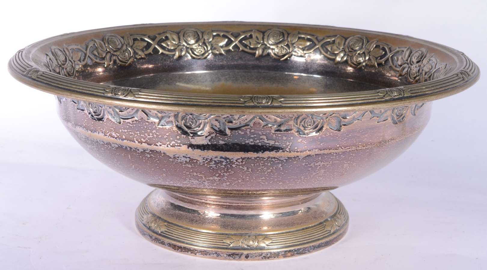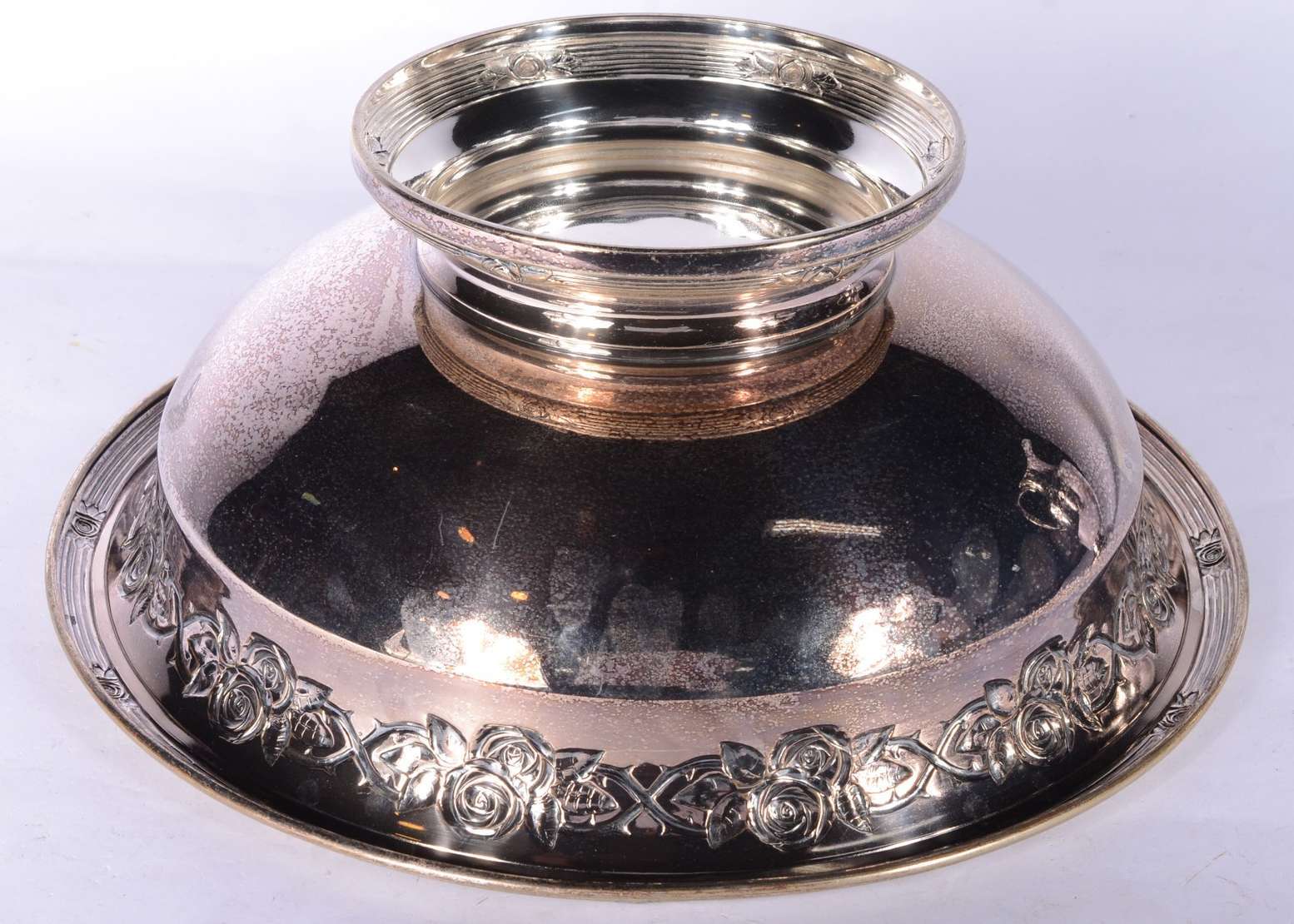 Duas fruteiras de cristal europeu lapidado, guarnição de metal prateado.