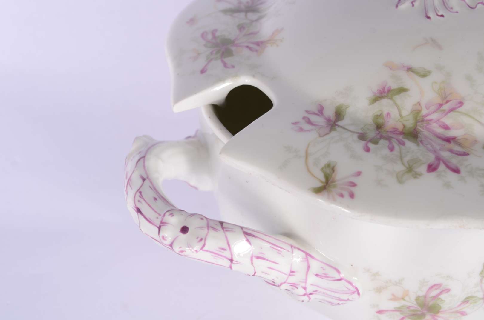 Paliteiro de biscuit policromado representando figura feminina repousando.