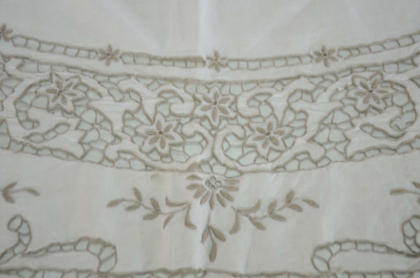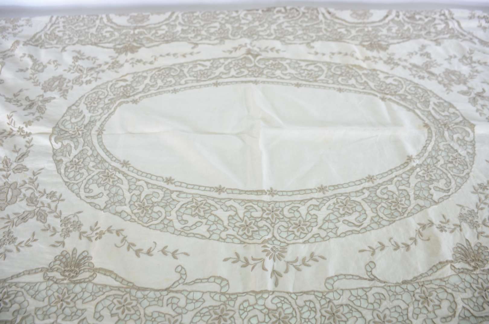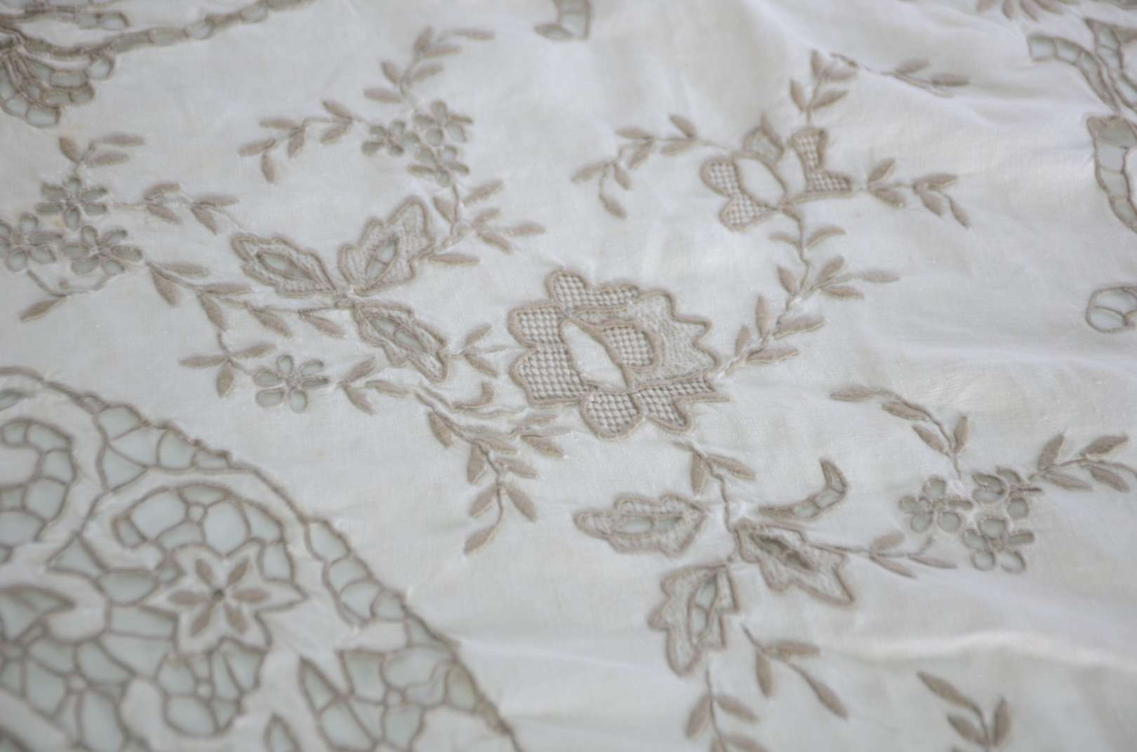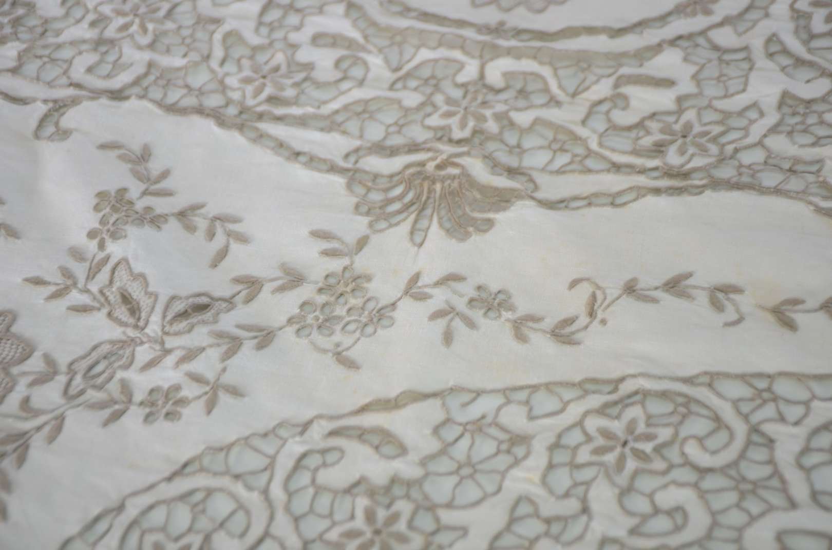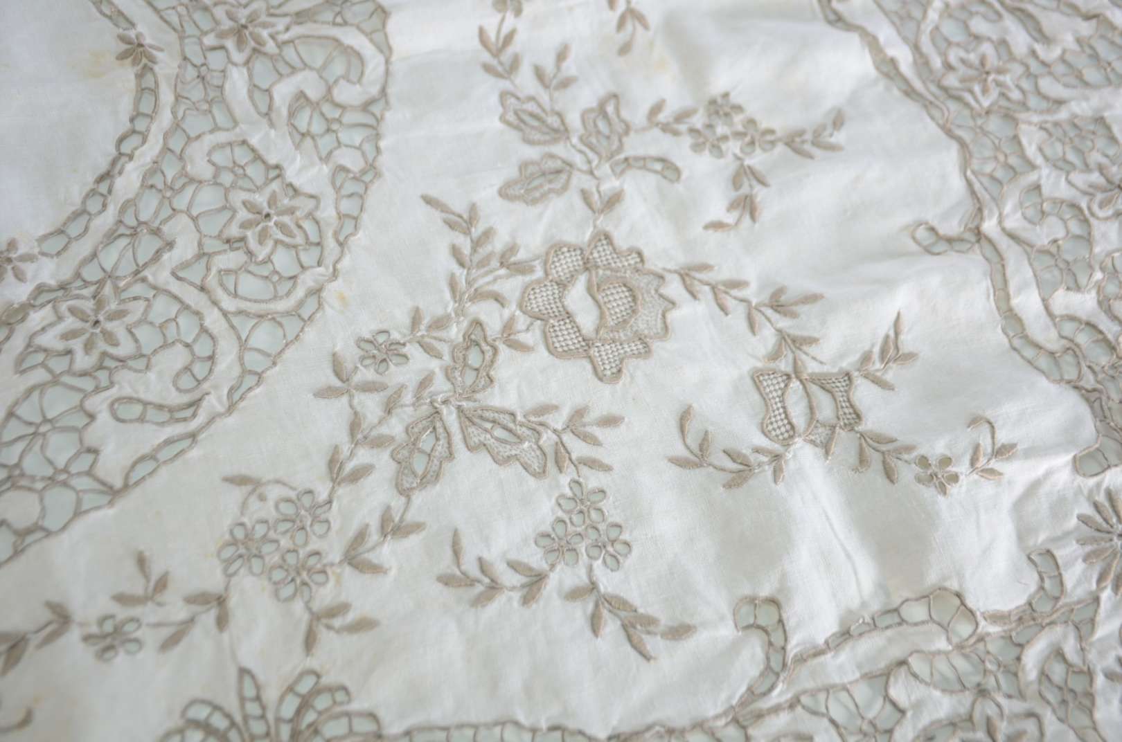Travessa de porcelana alemã de Meissen, fundo branco decorado com ramos florais em policromia e borda recortada com f...
