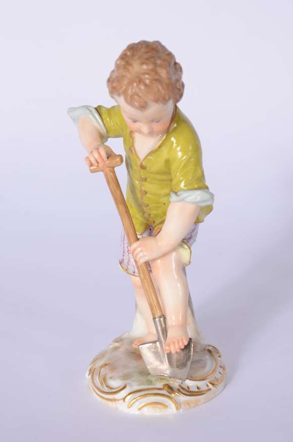 Escultura de porcelana alemã de Meissen representando pequeno jardineiro.