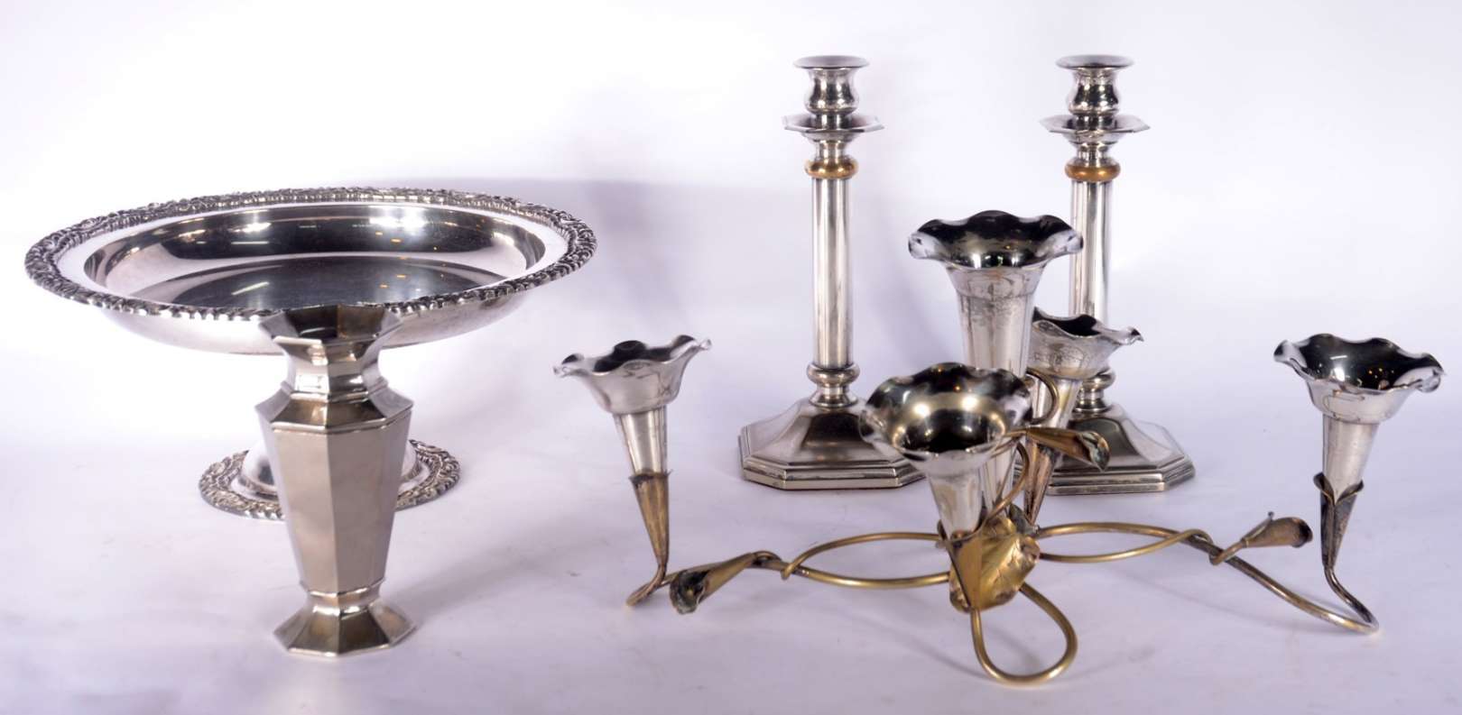 Duas fruteiras de cristal europeu lapidado, guarnição de metal prateado.