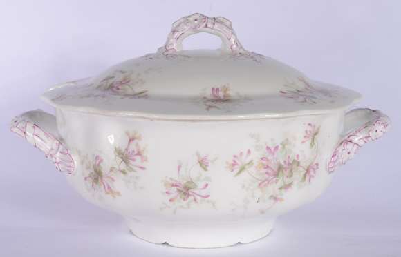 Sopeira de porcelana francesa de Limoges, branca com flores em policromia.