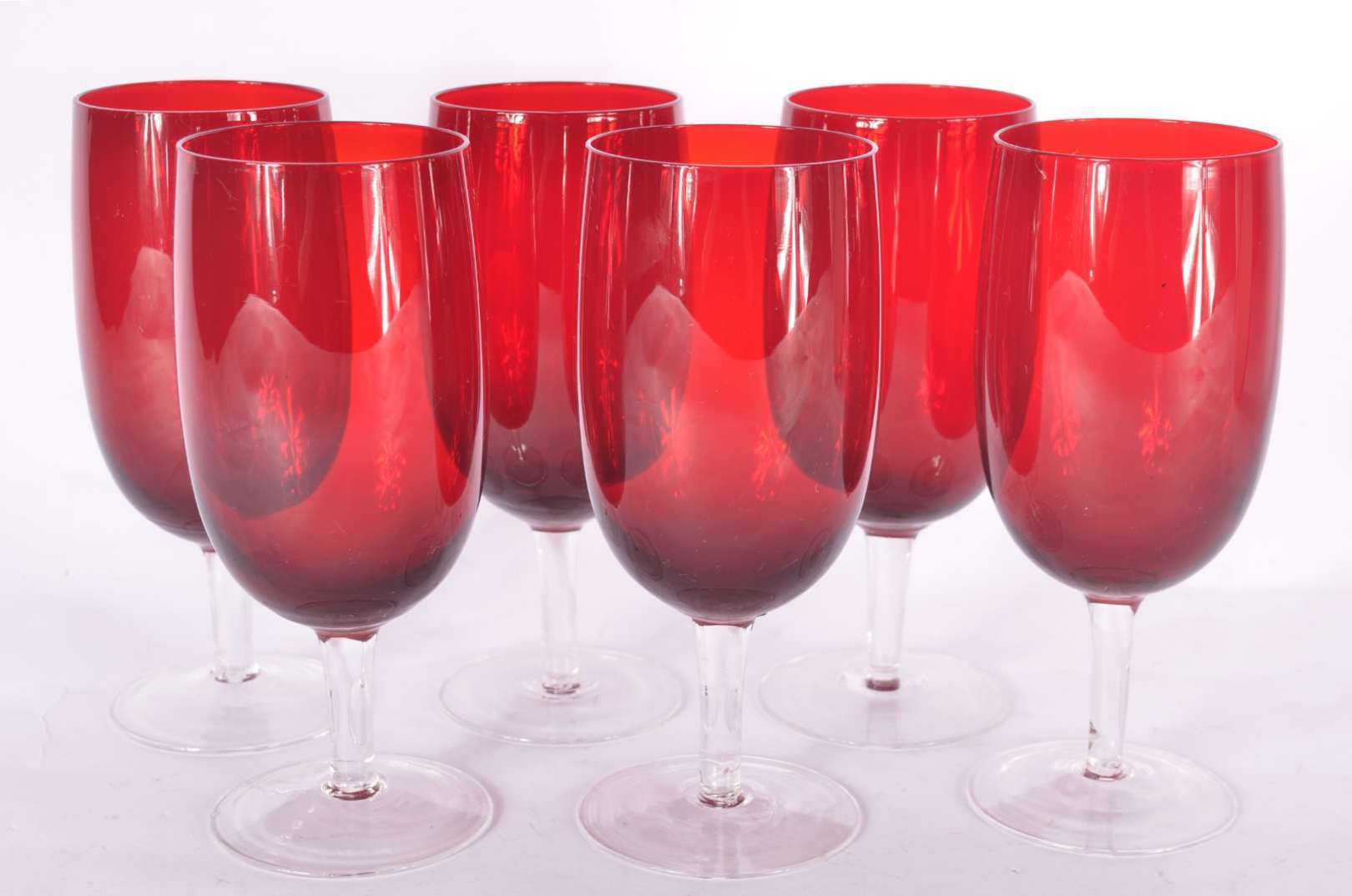 Conjunto com 6 cálices para vinho de cristal doublé rubi.