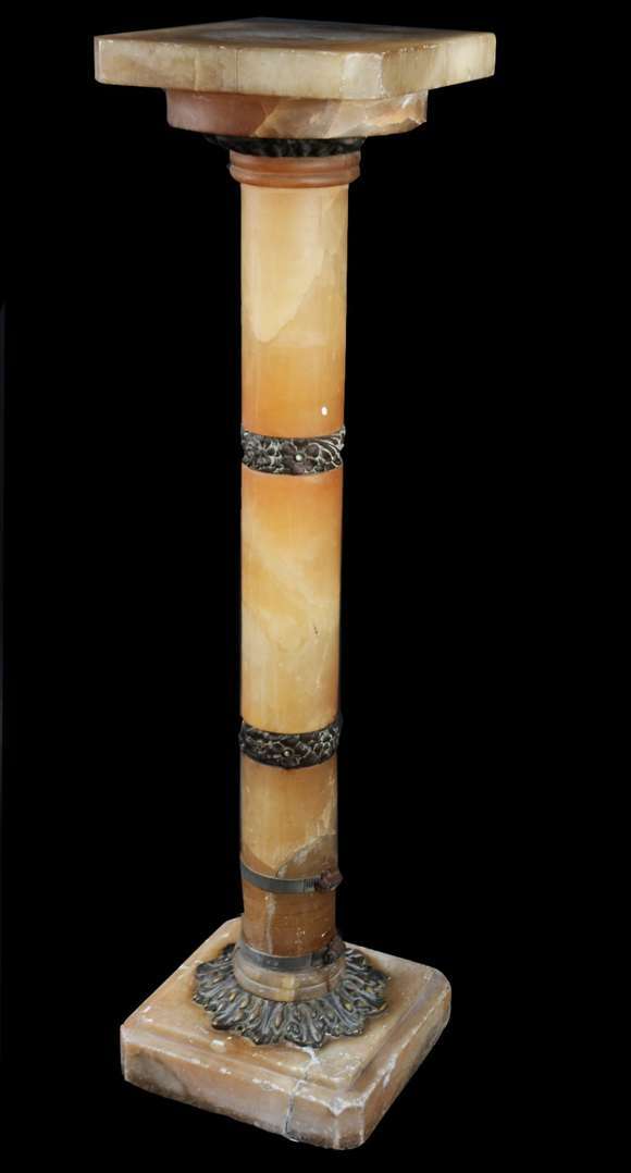 Coluna de alabastro com detalhes de metal (Base colada e com reforço de metal).