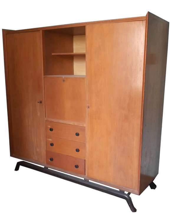 Móvel de jacarandá para faqueiro, seis gavetas com repartições internas de veludo azul para talheres, pernas torneada...