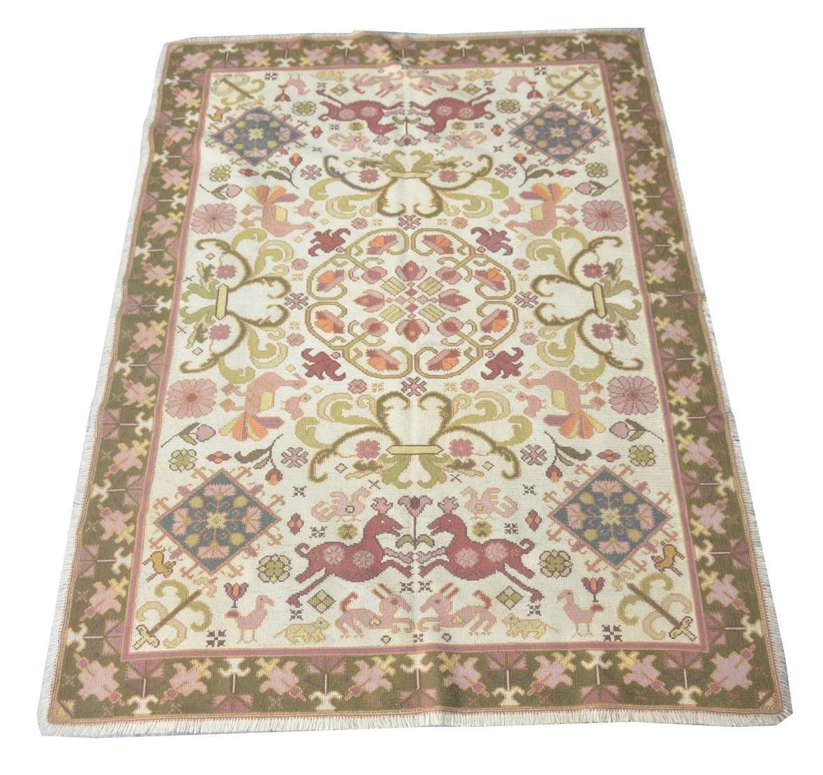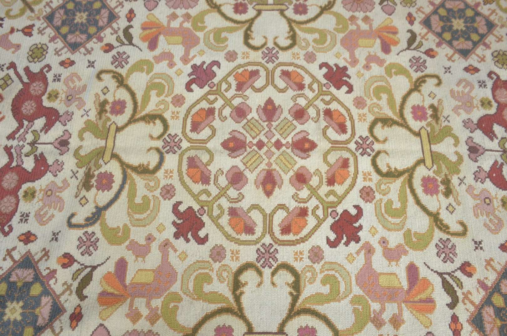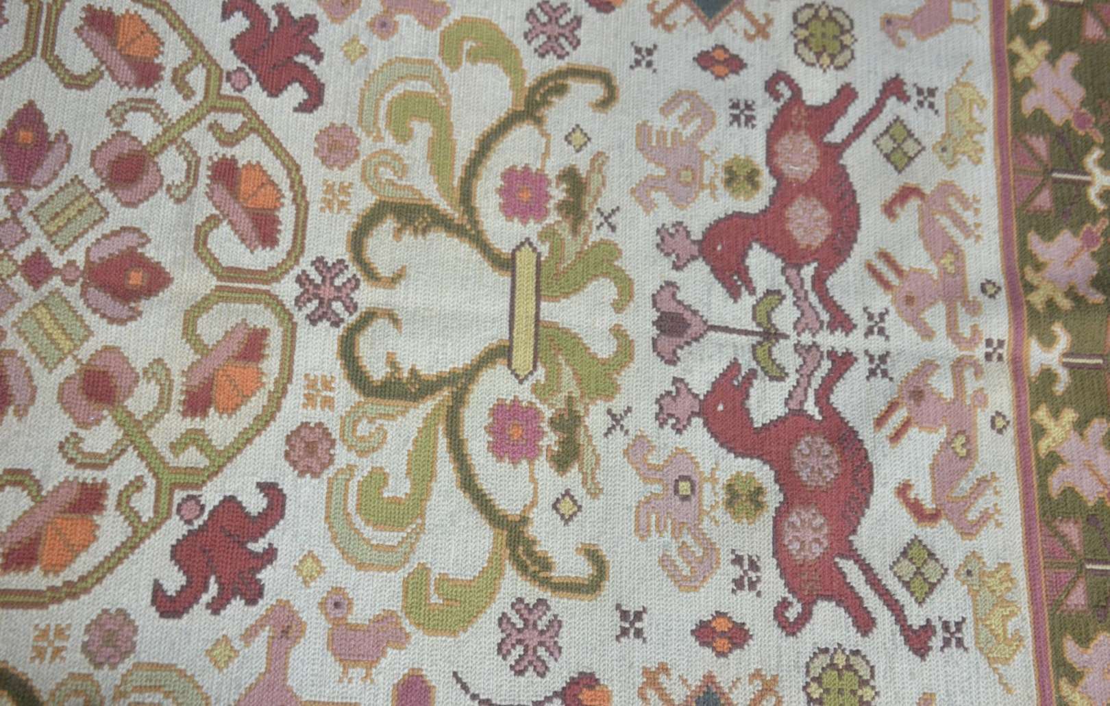 Tapeçaria decorada com cenas de figuras a cavalo.