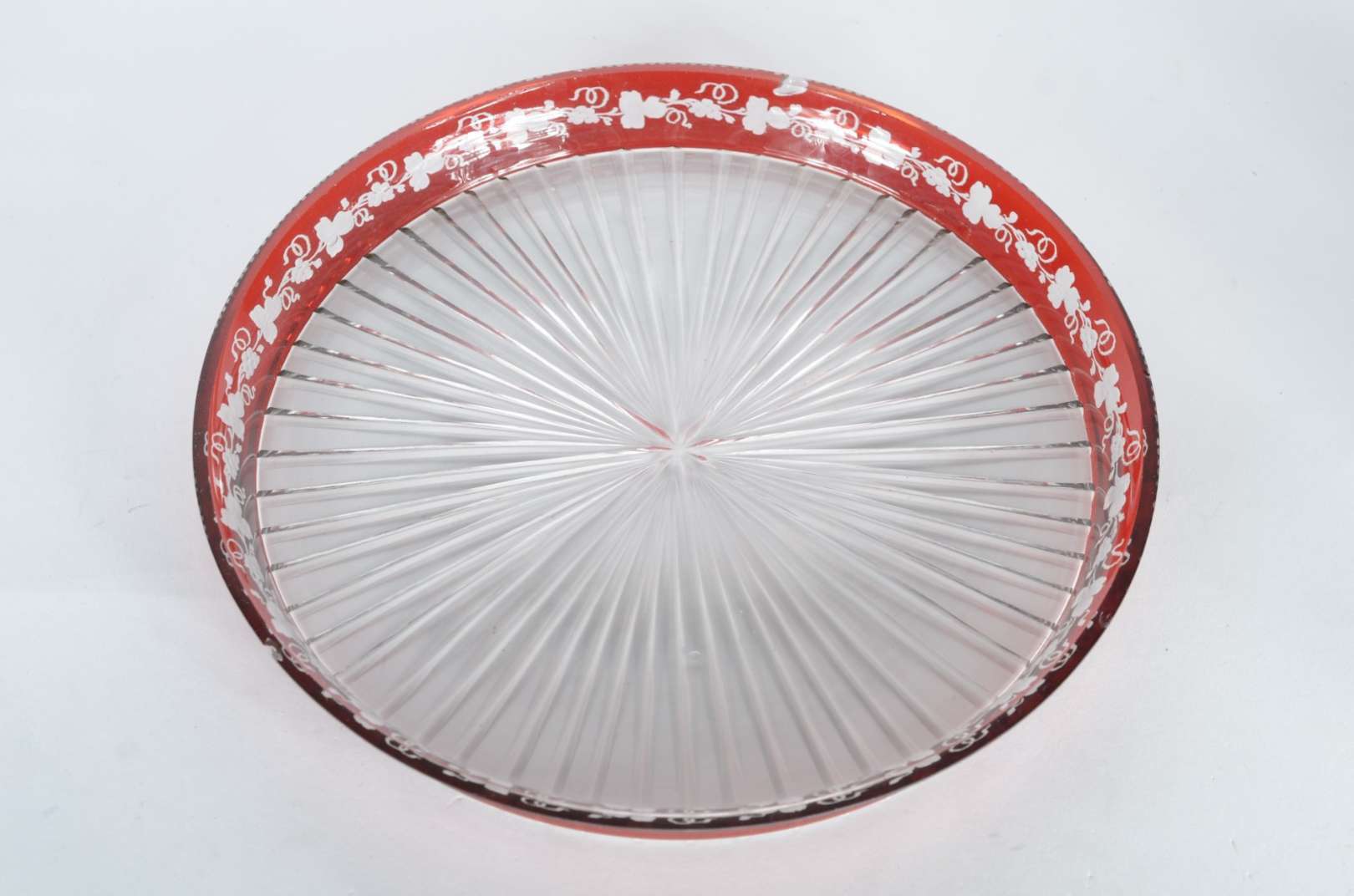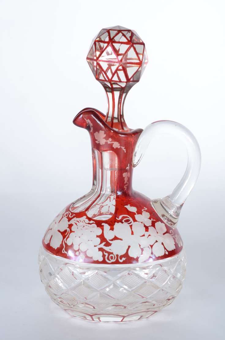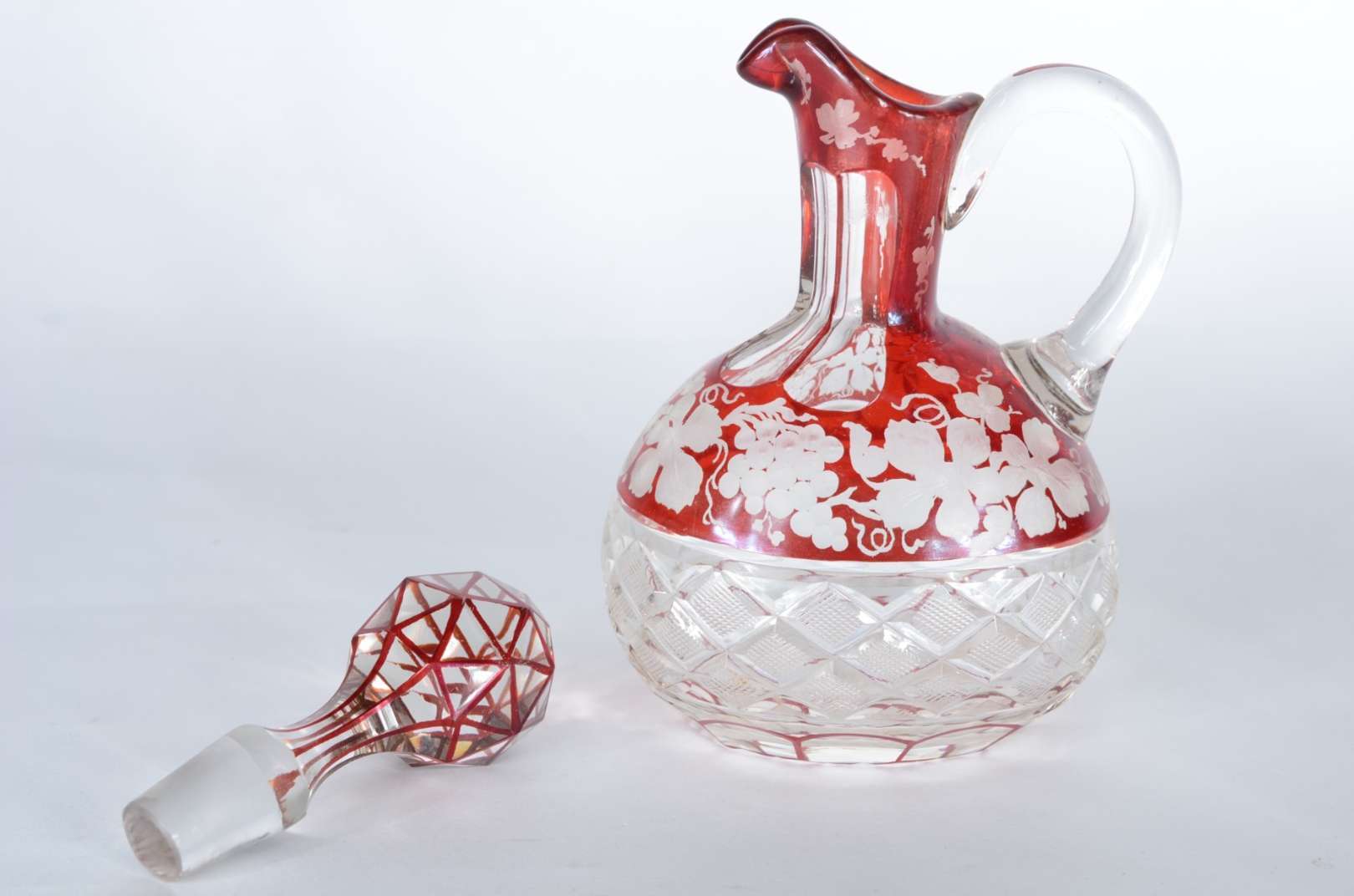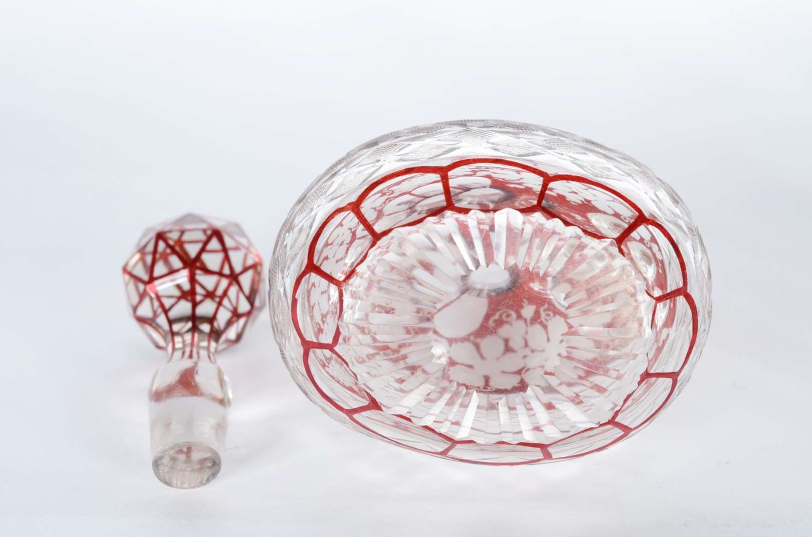 Floreira de cristal europeu doublé rubi lapidado. Borda com lascado.