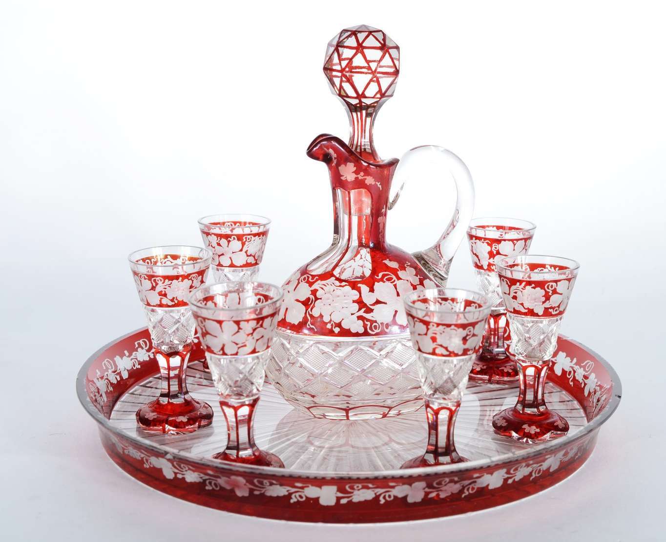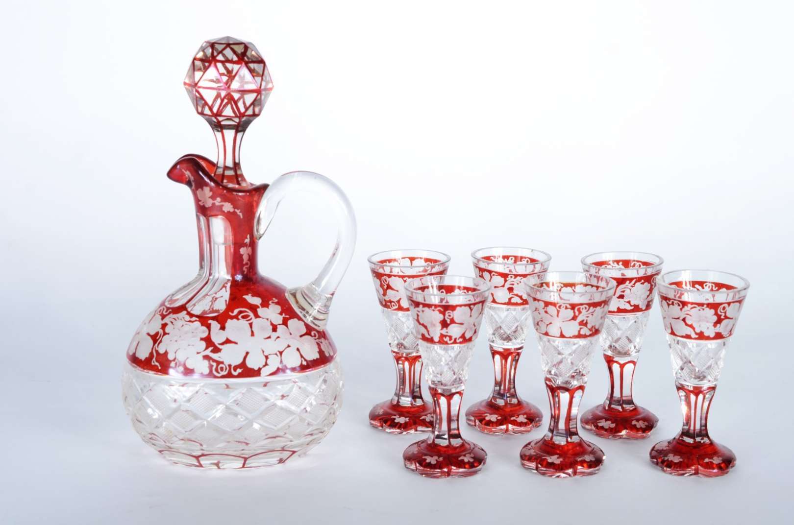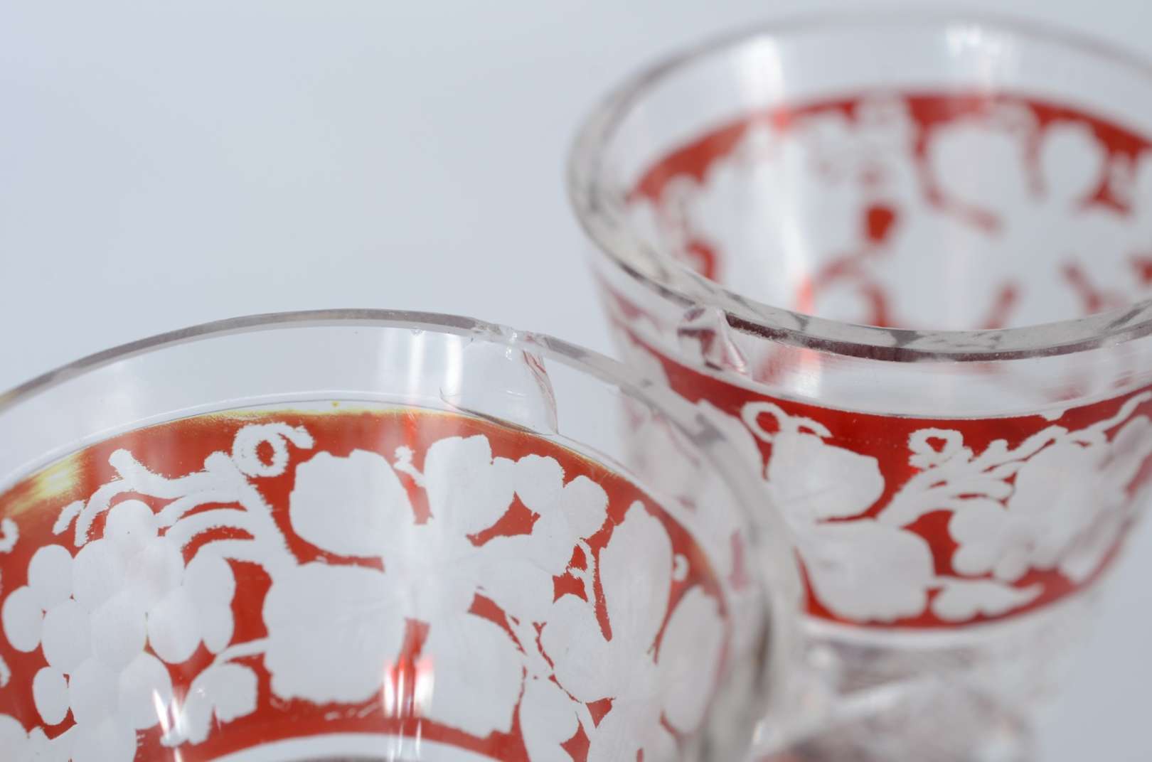Floreira de cristal europeu doublé rubi lapidado. Borda com lascado.