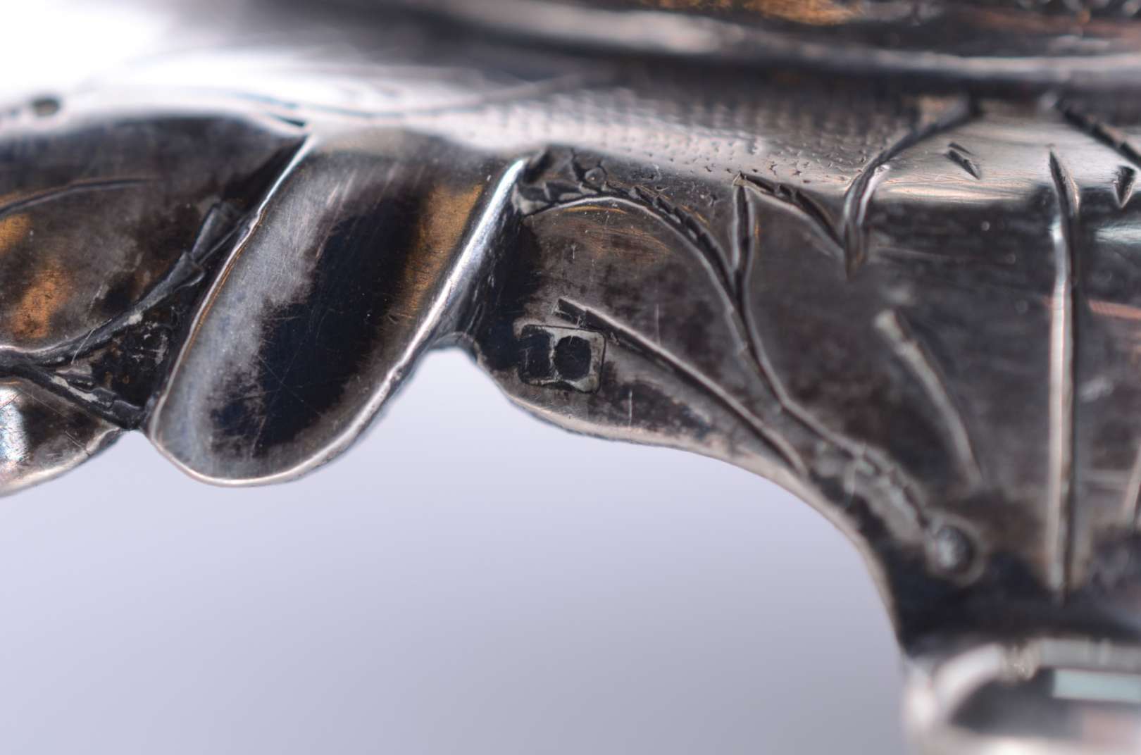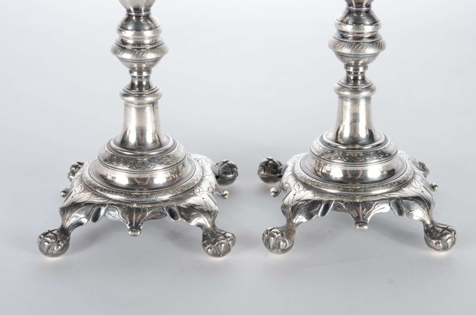 Par de abatjoures de madeira entalhada e patinada, cúpulas de pergaminho. Desgastes.