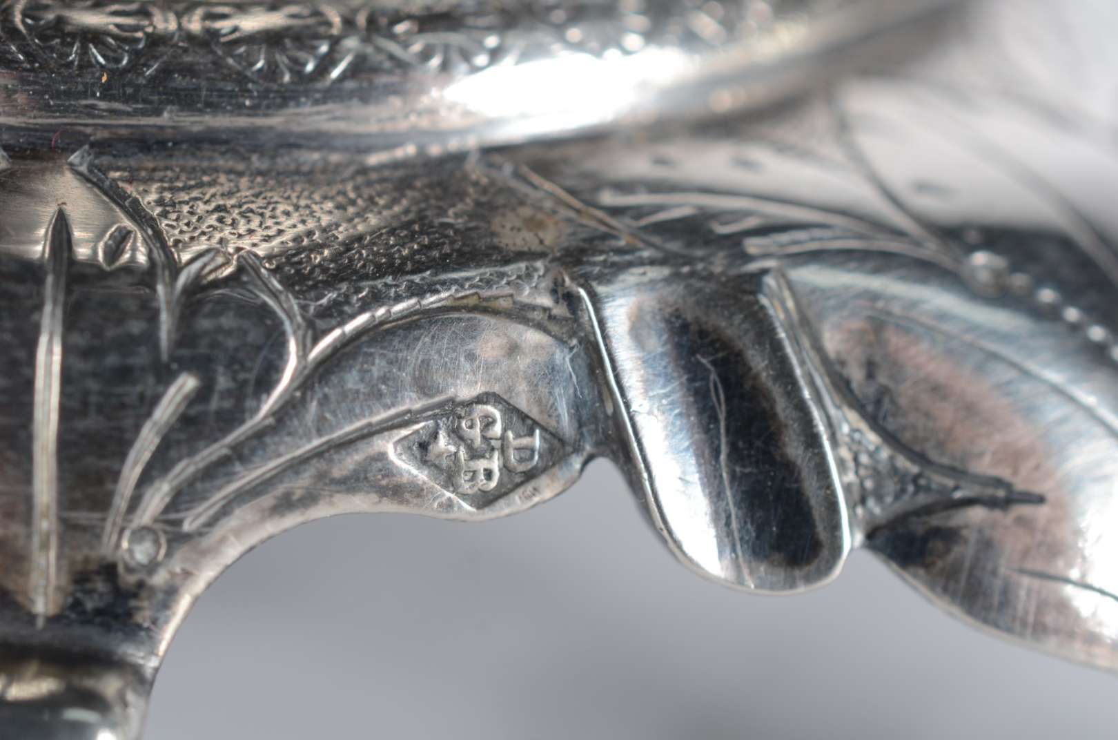 Abatjour de vidro opalinado decorado com flores em policromia, detalhes em metal e borda com canutilhos de vidro.