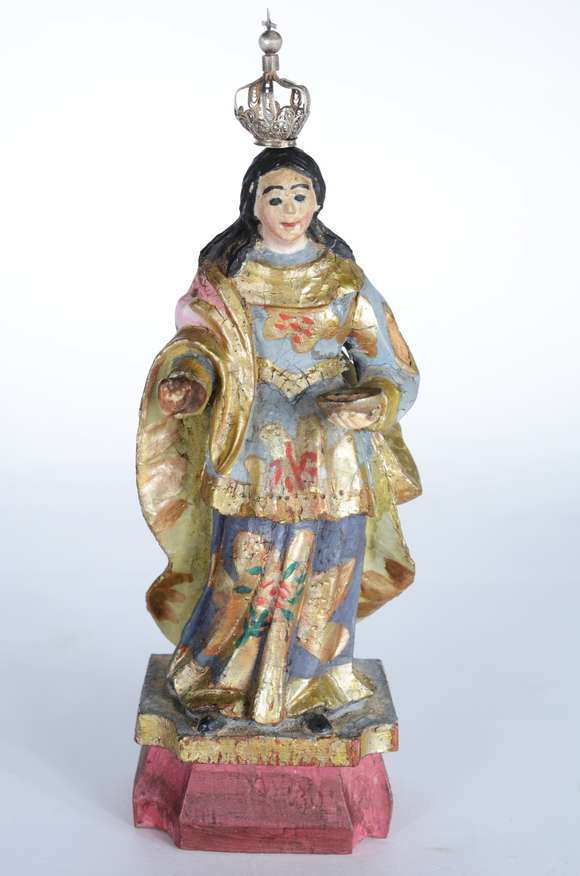 Santa Luzia - Antiga imagem de madeira policromada, coroa de prata. Desgastes.