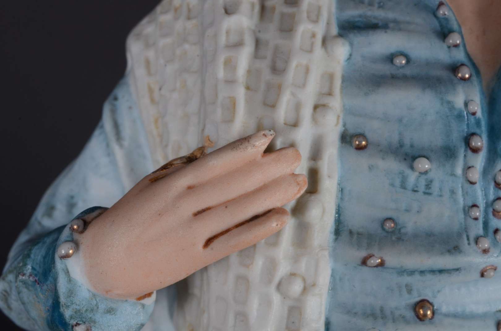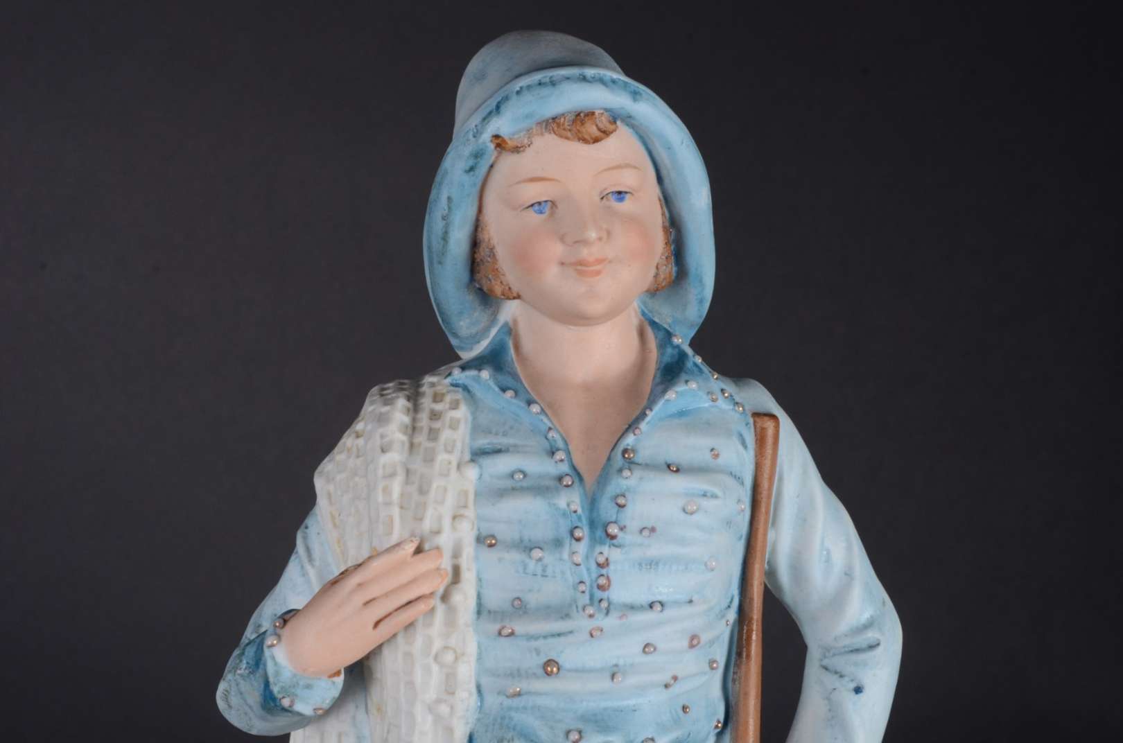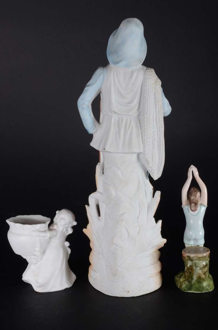 PIANO BABY - Escultura em biscuit alemão policromado, século XIX, representando "criança com brinquedo". Marcada e nu...