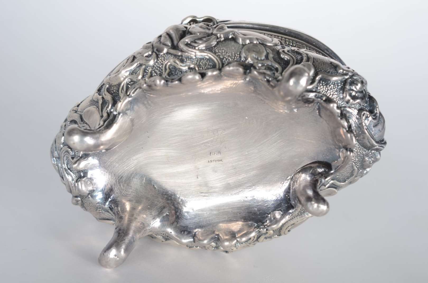 Espelho veneziano com borda recortada, oxidações nos parafusos.