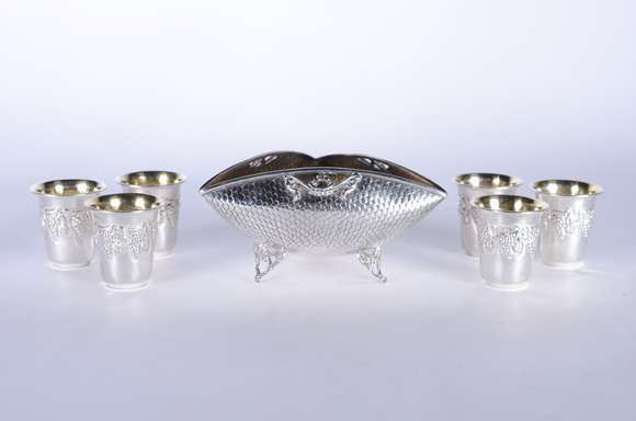 Diversas peças de prata, sendo: 6 cálices e porta confeitos. Peso da prata: 160 g. (Por motivos de segurança a peça n...