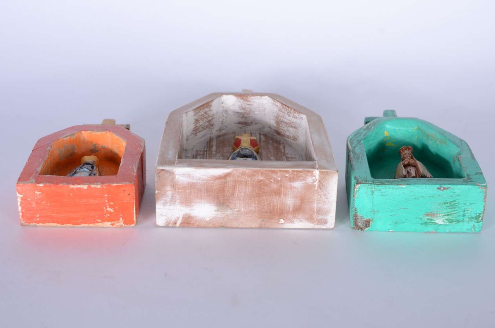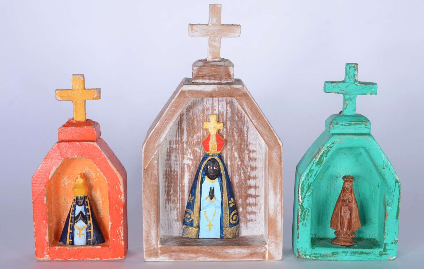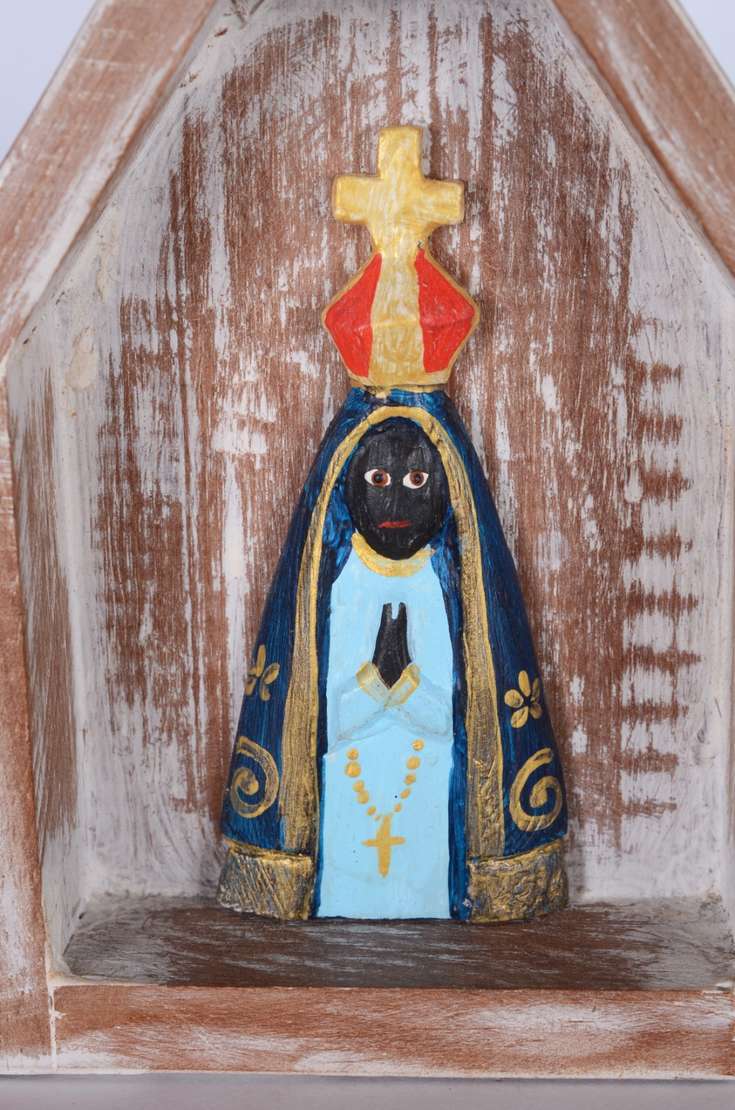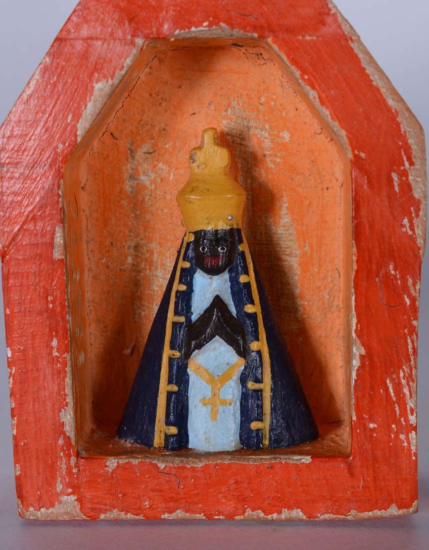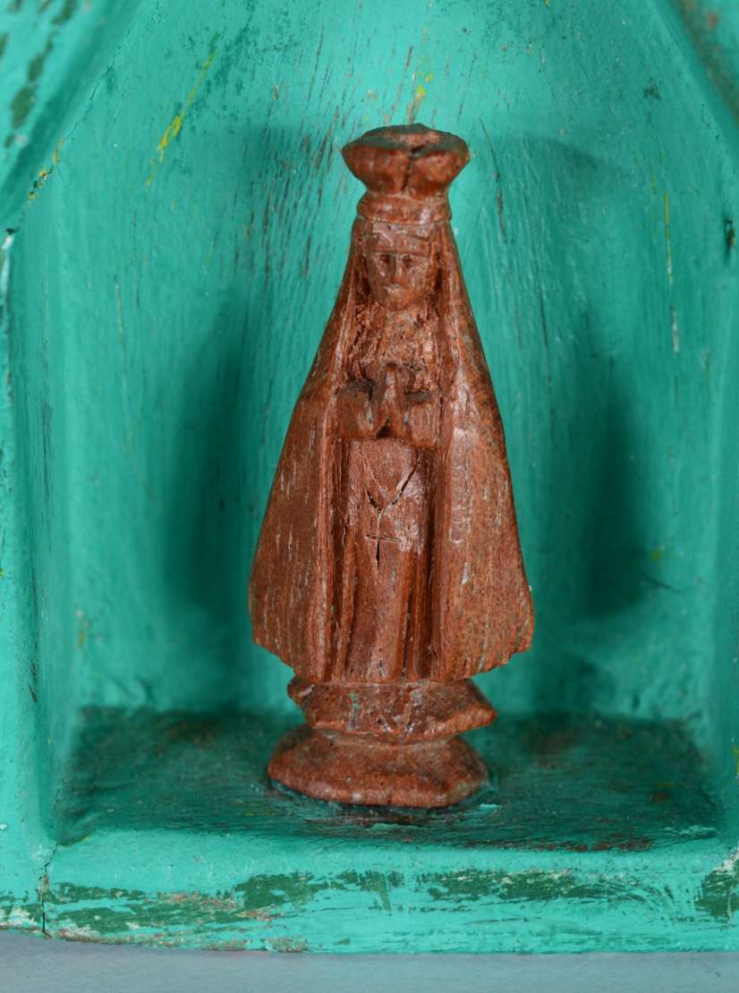 Capela com Nossa Senhora de madeira policromada. Parte do acervo da loja "Em Uso".