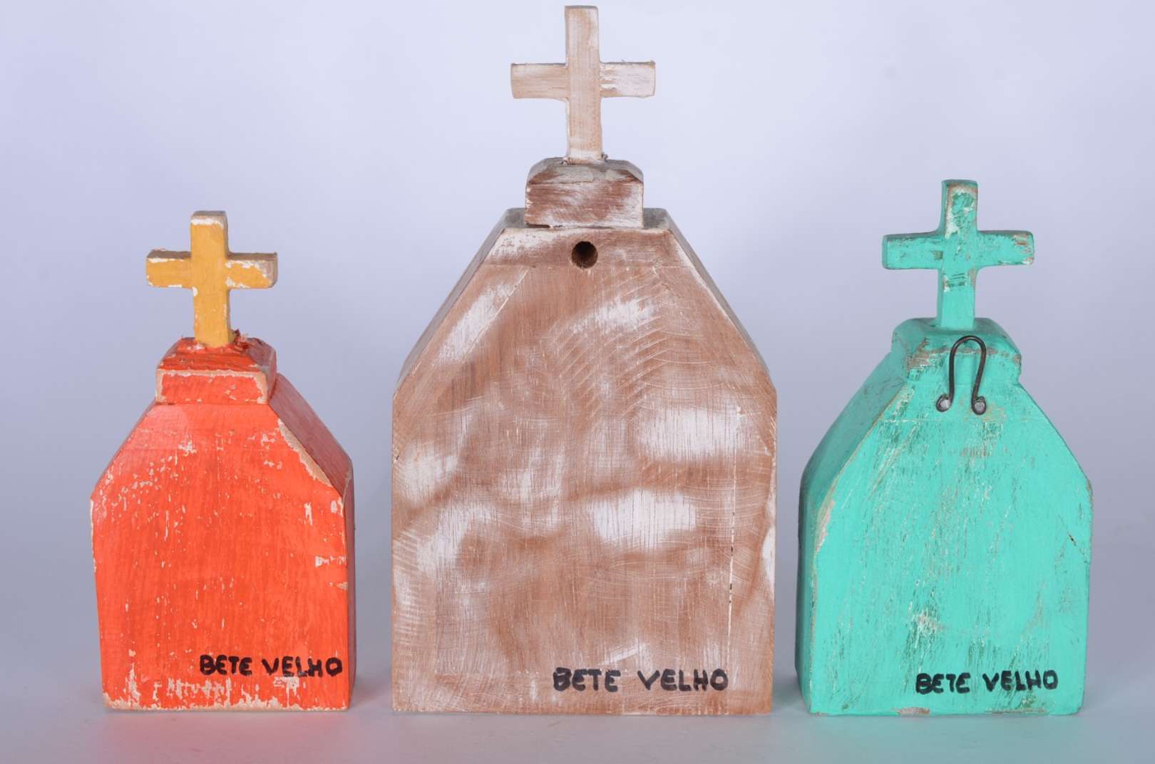 Escultura representando "Divino Espirito Santo" esculpido em madeira de demolição pintada, assinado Rey. Parte do ace...