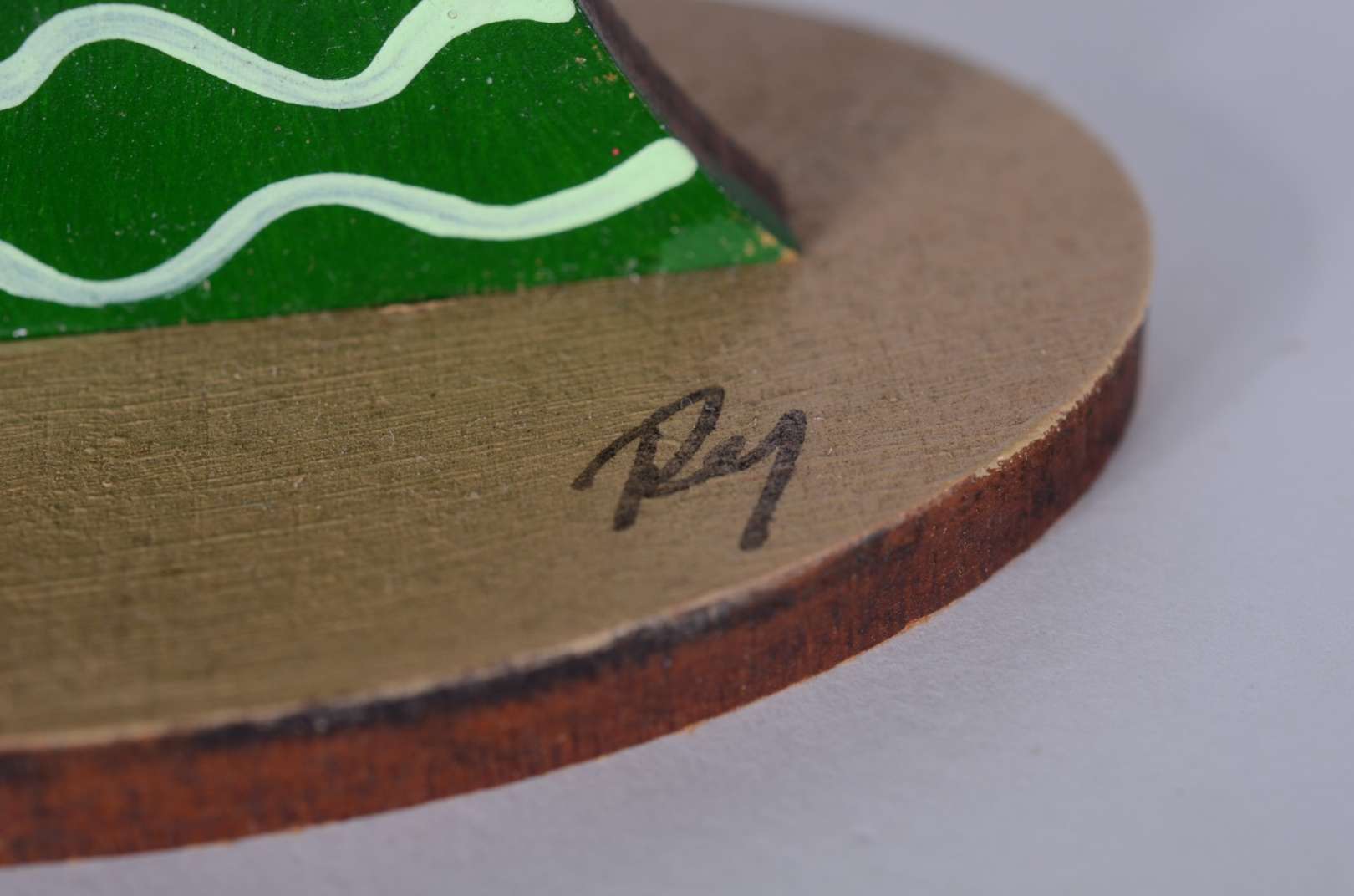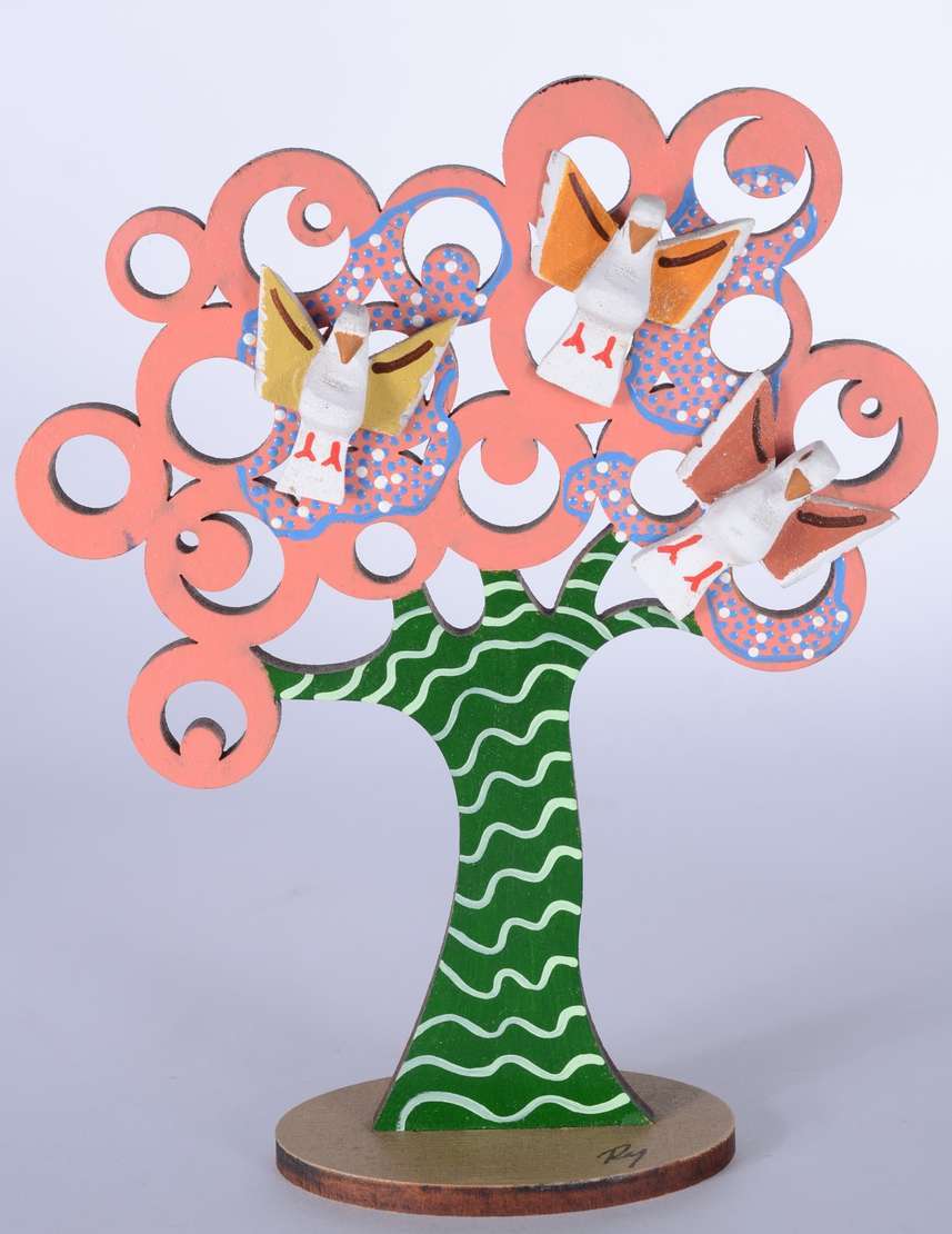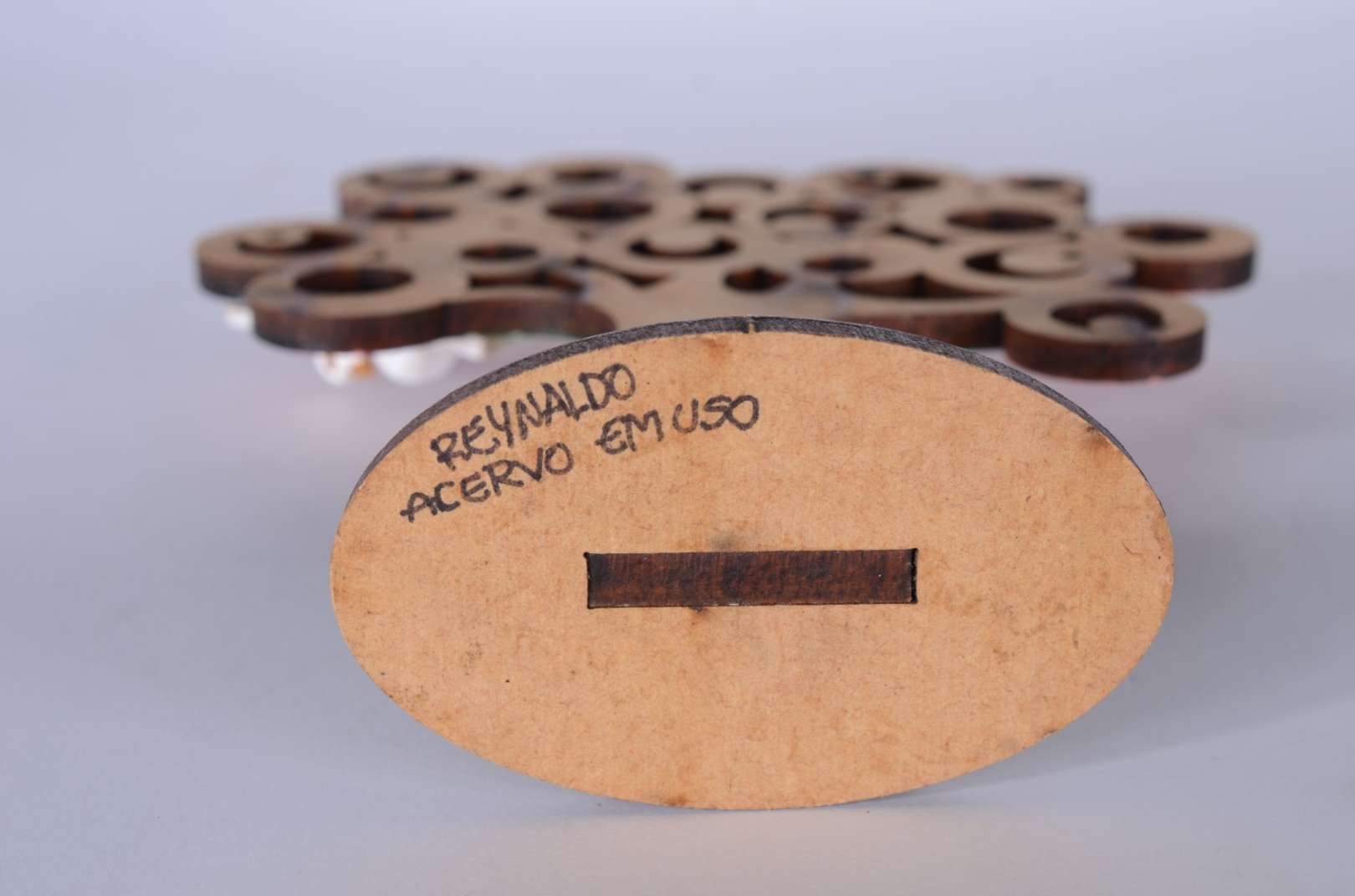 Escultura representando "Divino Espirito Santo" esculpido em madeira de demolição pintada, assinado Rey. Parte do ace...