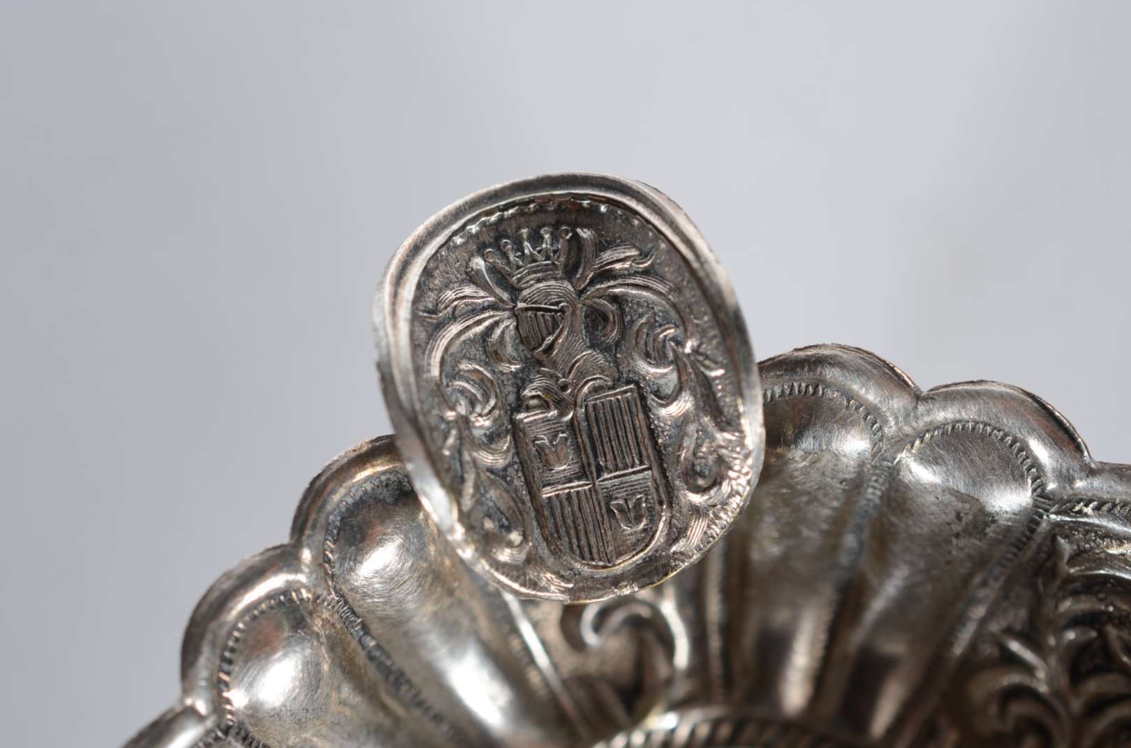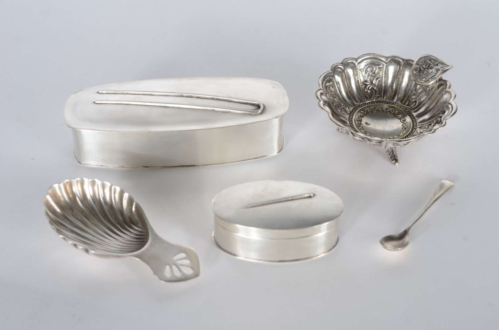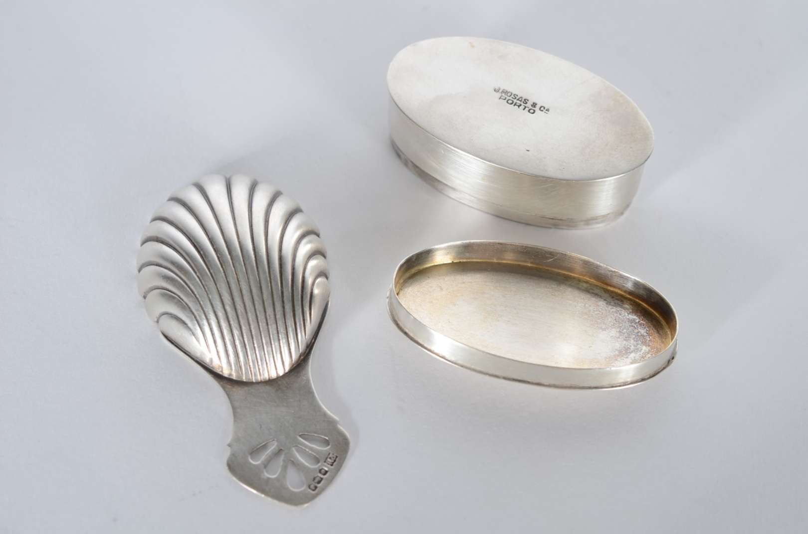 Caixa/ porta jóias de prata contraste 999 mls., feitio oval, trabalhada com guirlandas em relevo, quatro pés recurvos...