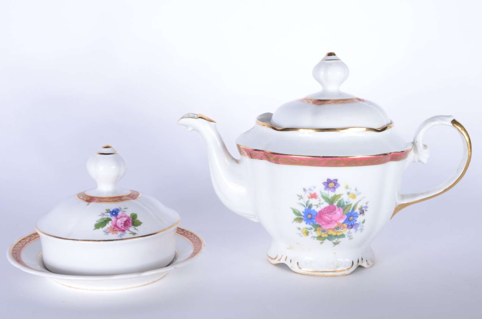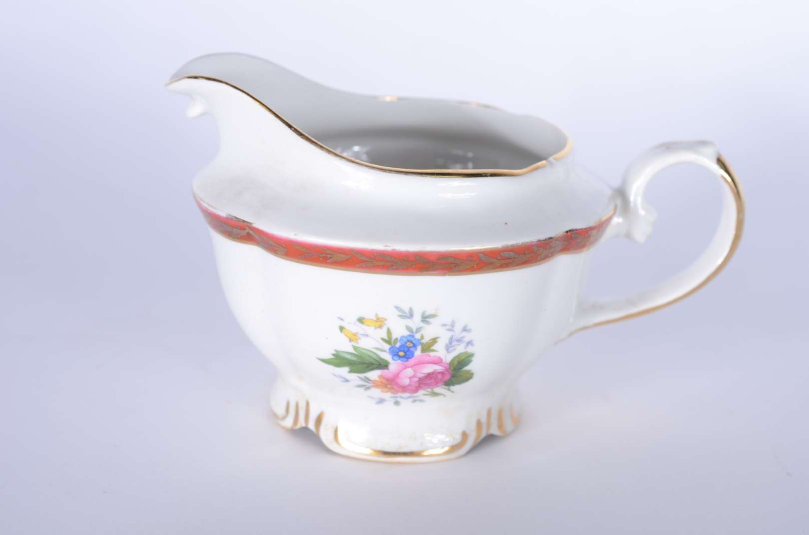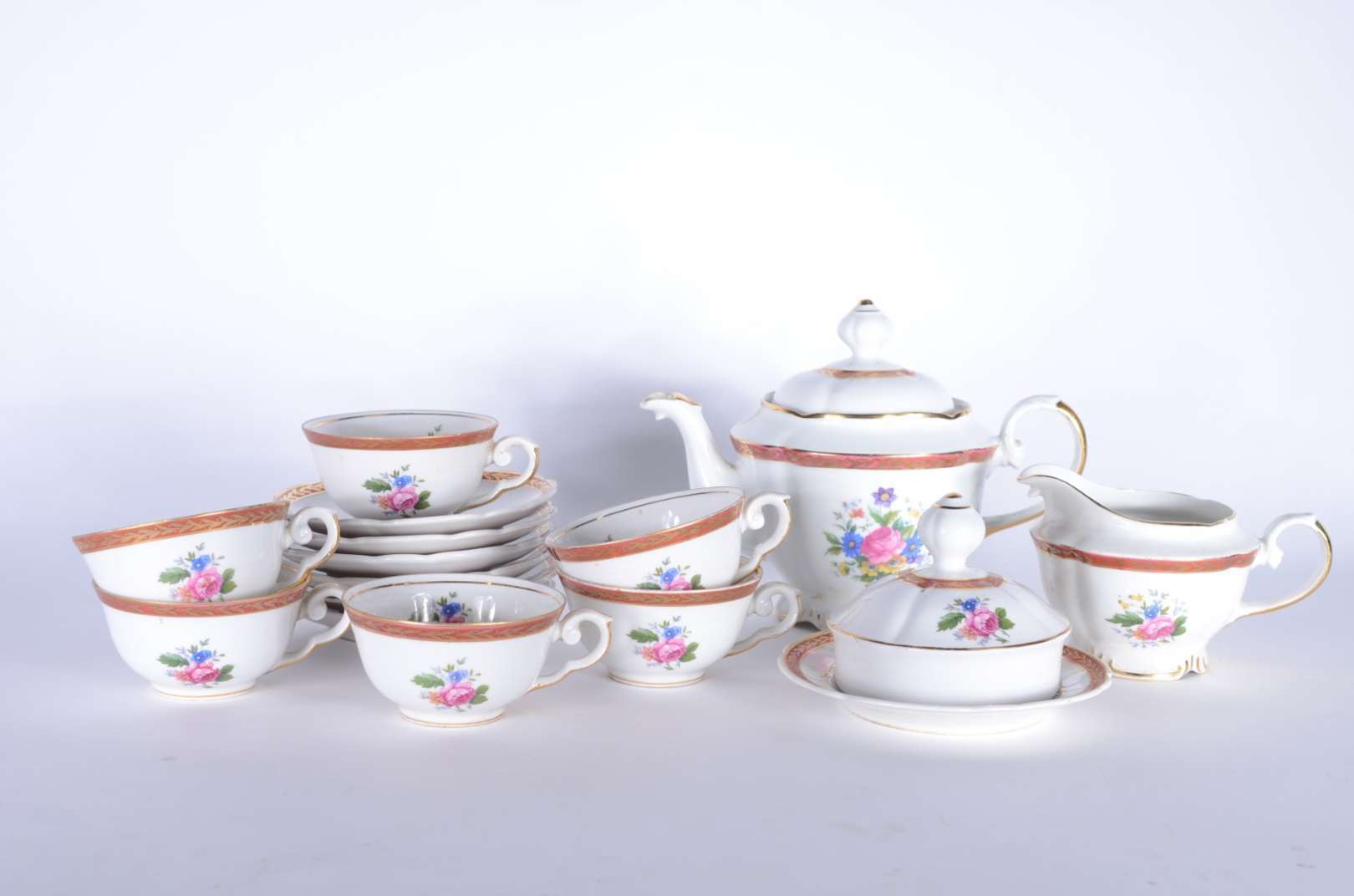 Serviço de porcelana oriental para chá e café, decorado com figuras de dragão em policromia sobre fundo rouge de fer,...