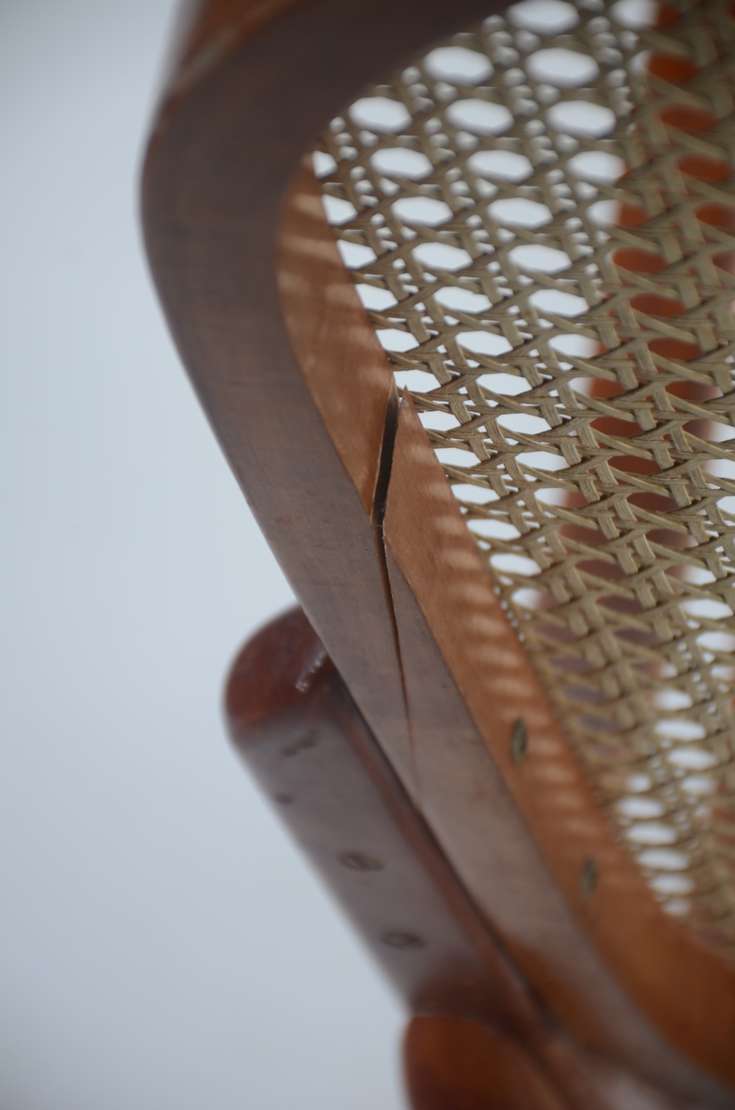 Cadeira baixa com braços de jacarandá, estilo Dom José, espaldar entalhado com cartelas e volutas, tabelas vazadas, a...