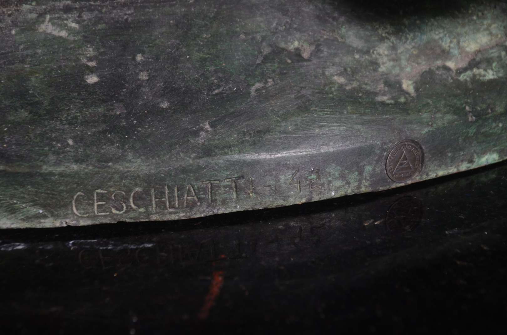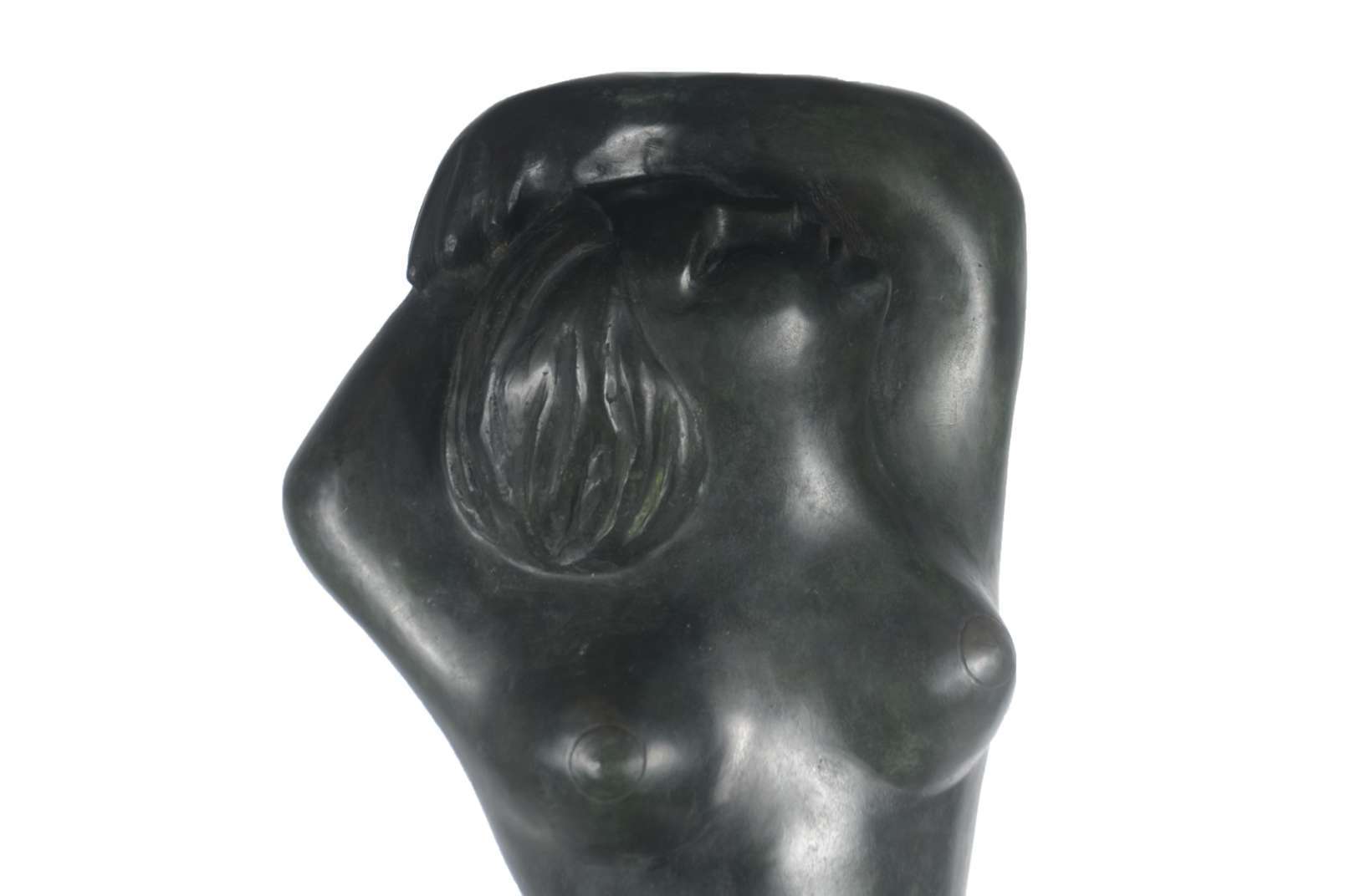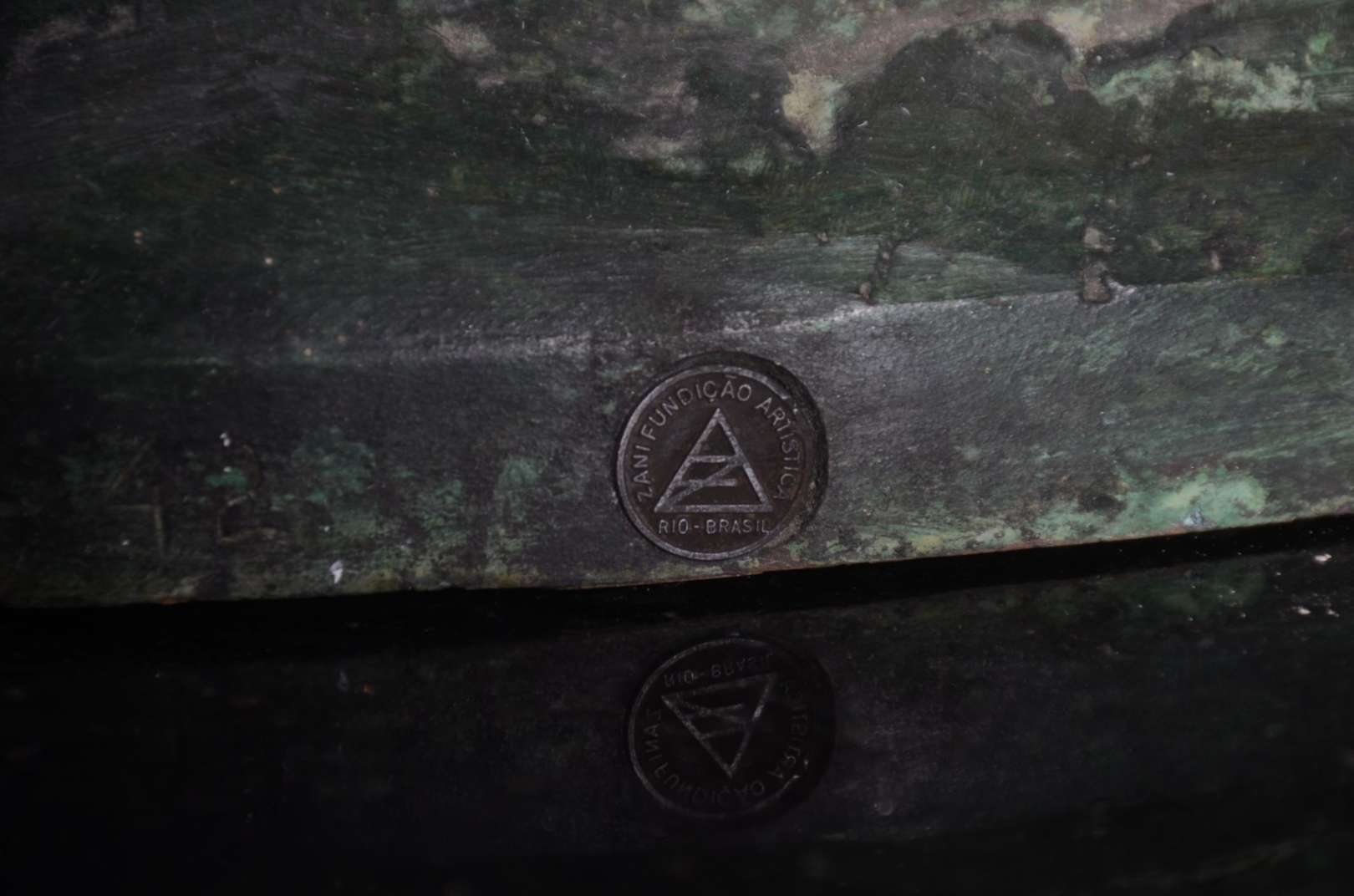 Escultura de bronze patinado representando figura feminina, base em granito. Década de 60. Selo da fundição Zani.