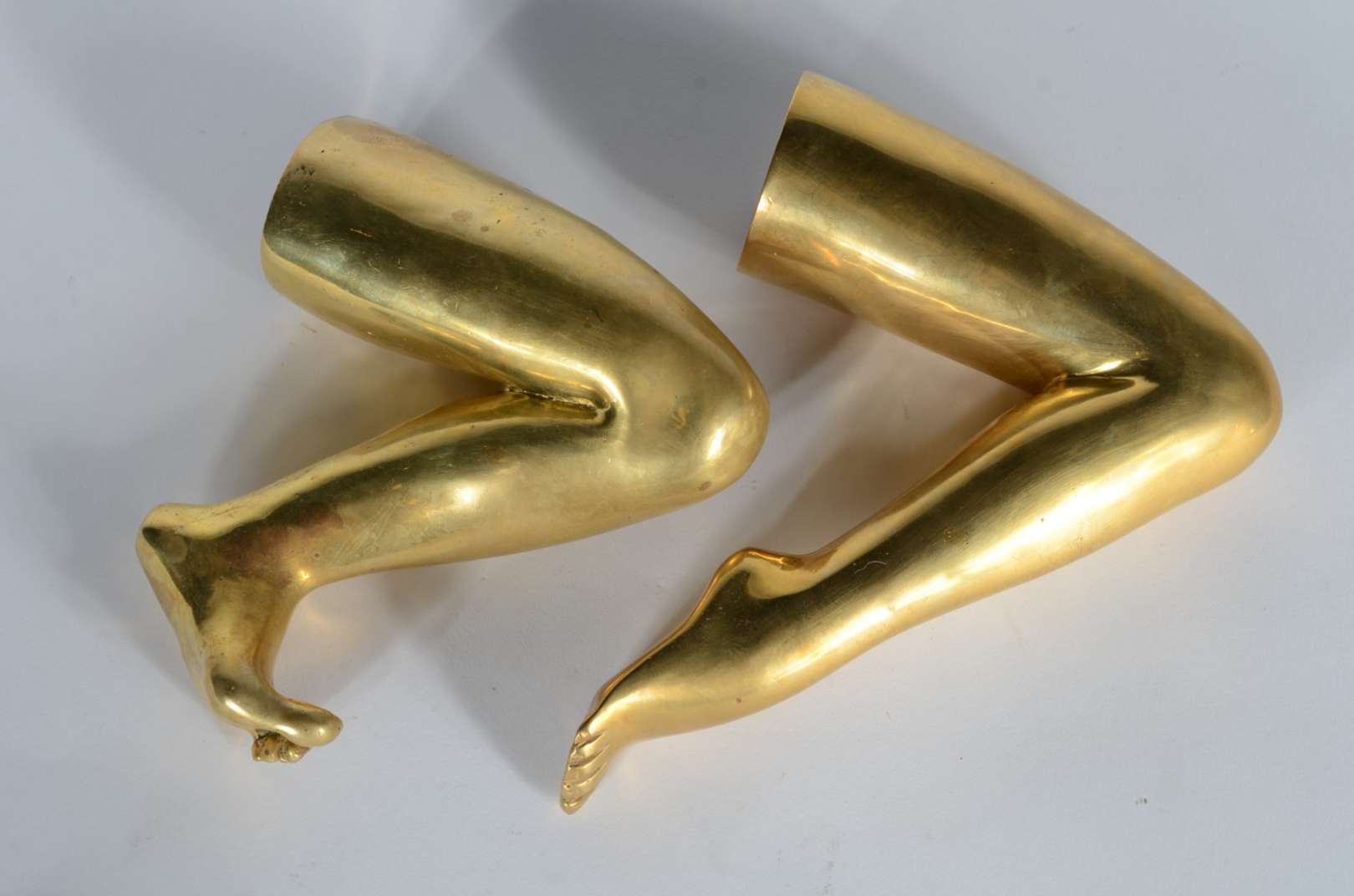 Conjunto com 5 esculturas de madeira entalhada e patinada de dourado representando figuras de anjos.