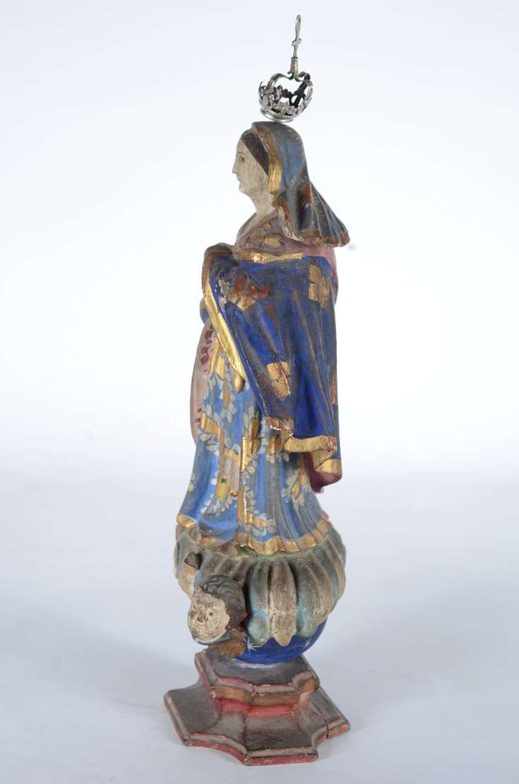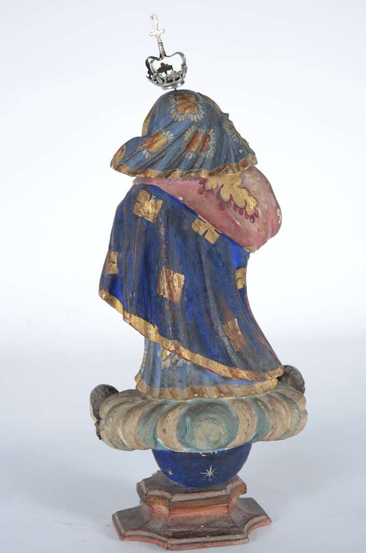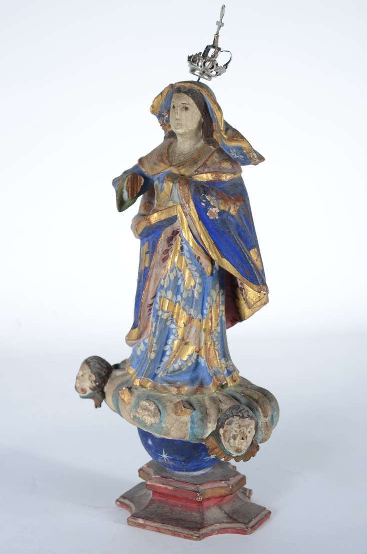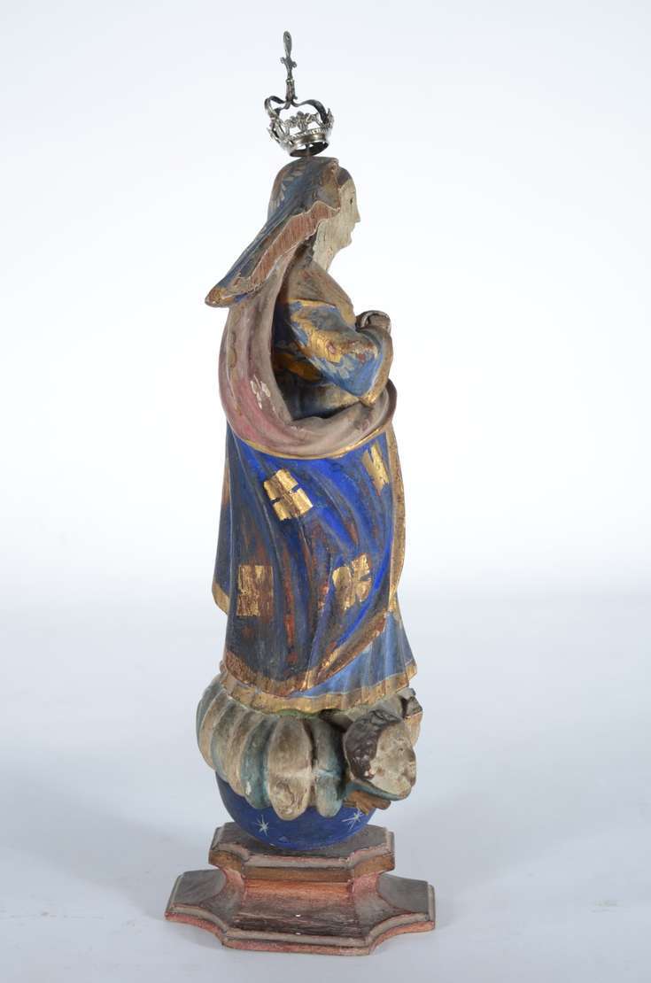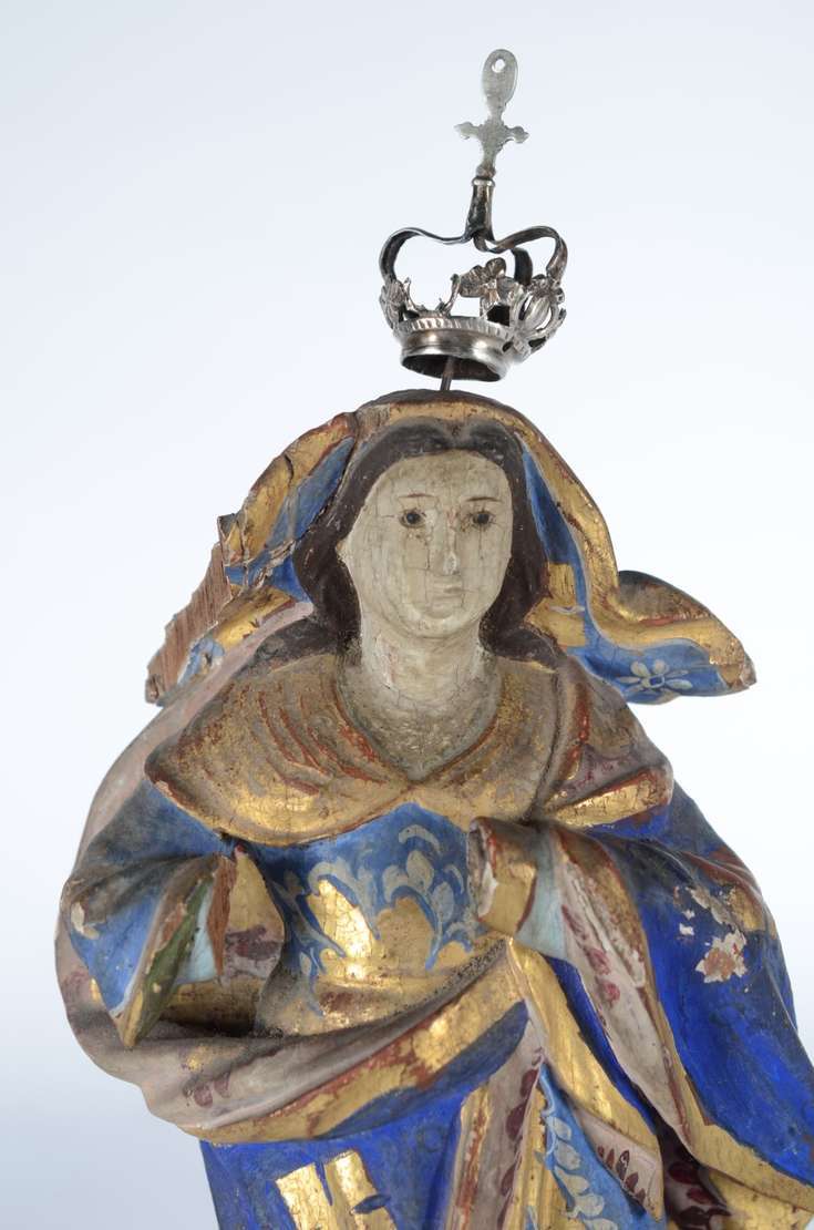 Nossa Senhora da Conceição - Antiga imagem de madeira policromada e dourada, coroa de prata (sem as mãos). Século XIX. Desgastes do tempo.
