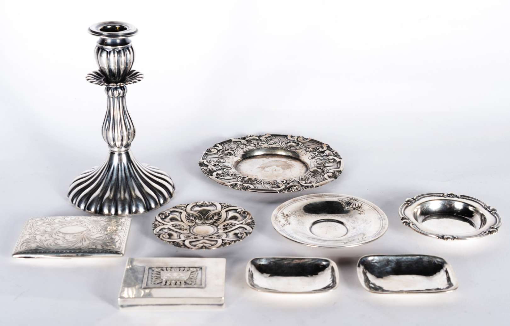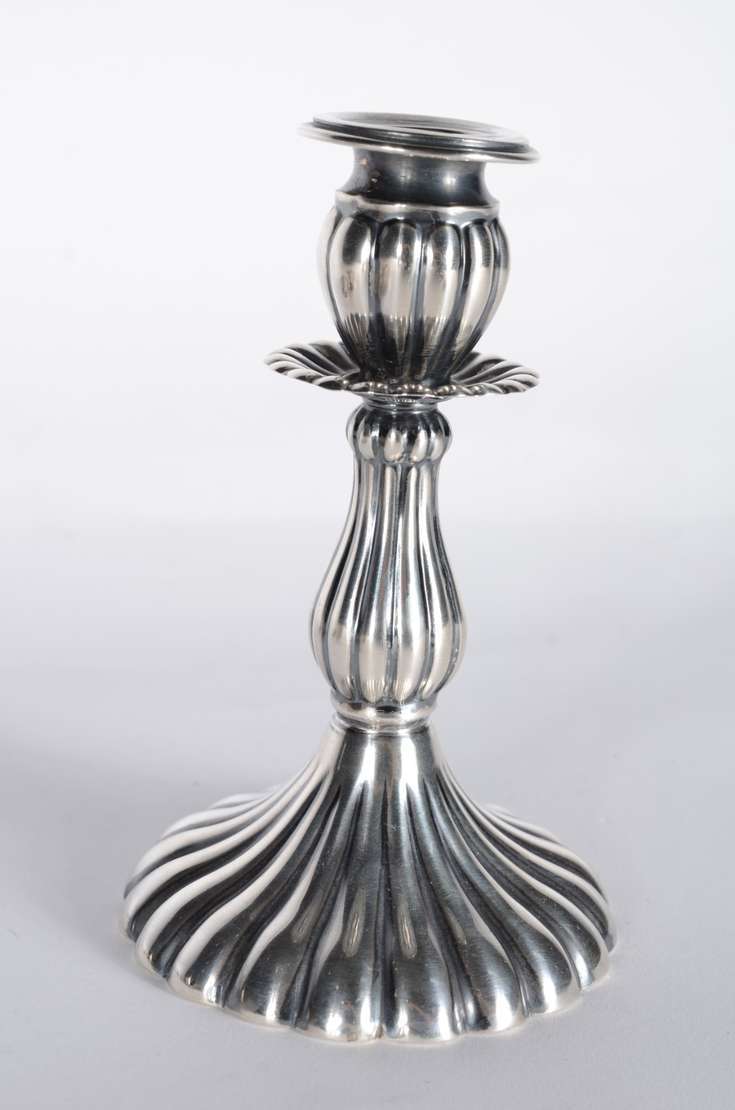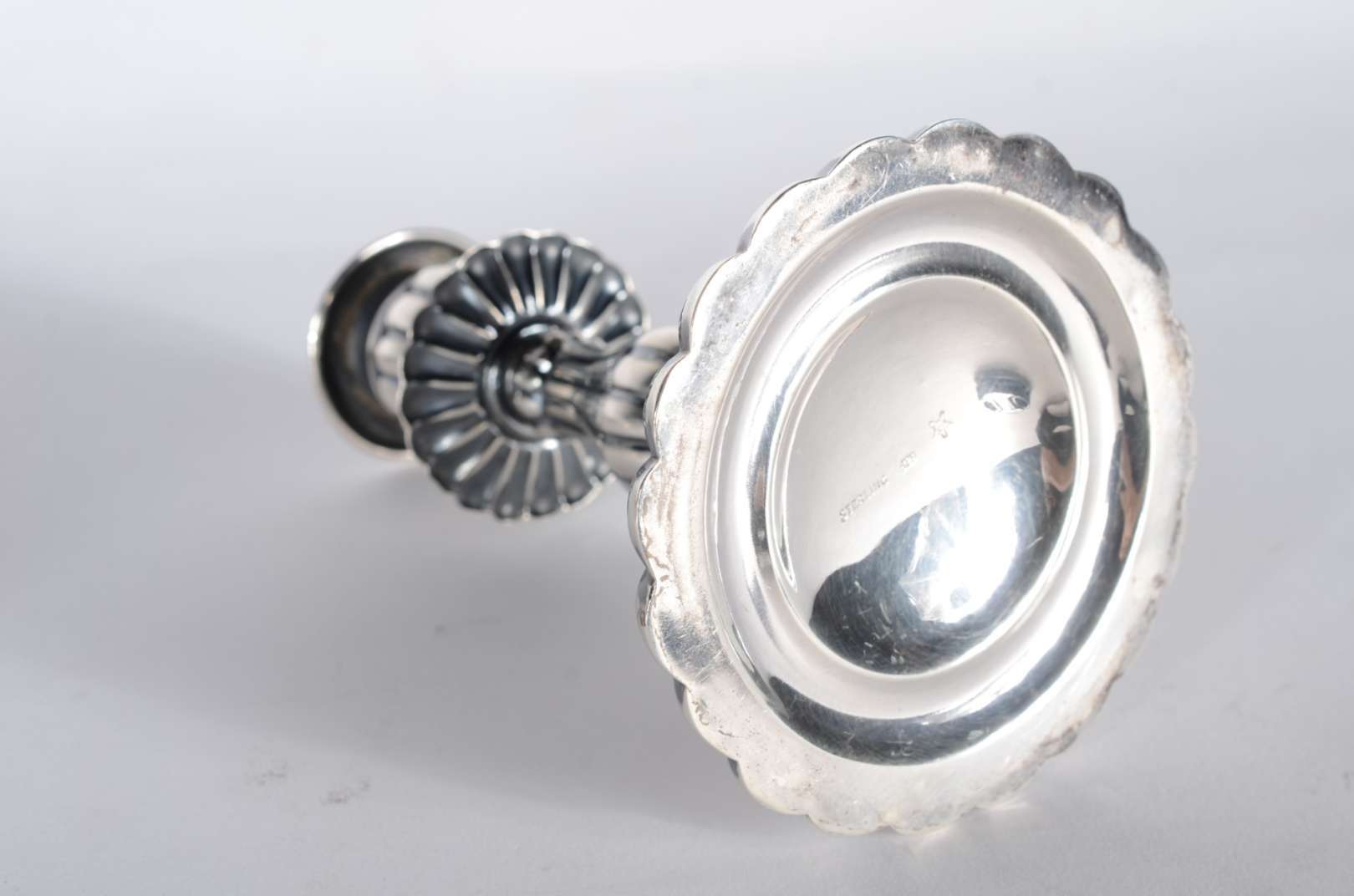 Diversas peças de estanho, sendo: par de castiçais e 6 taças para vinho John Sommers. Total: 8 peças.