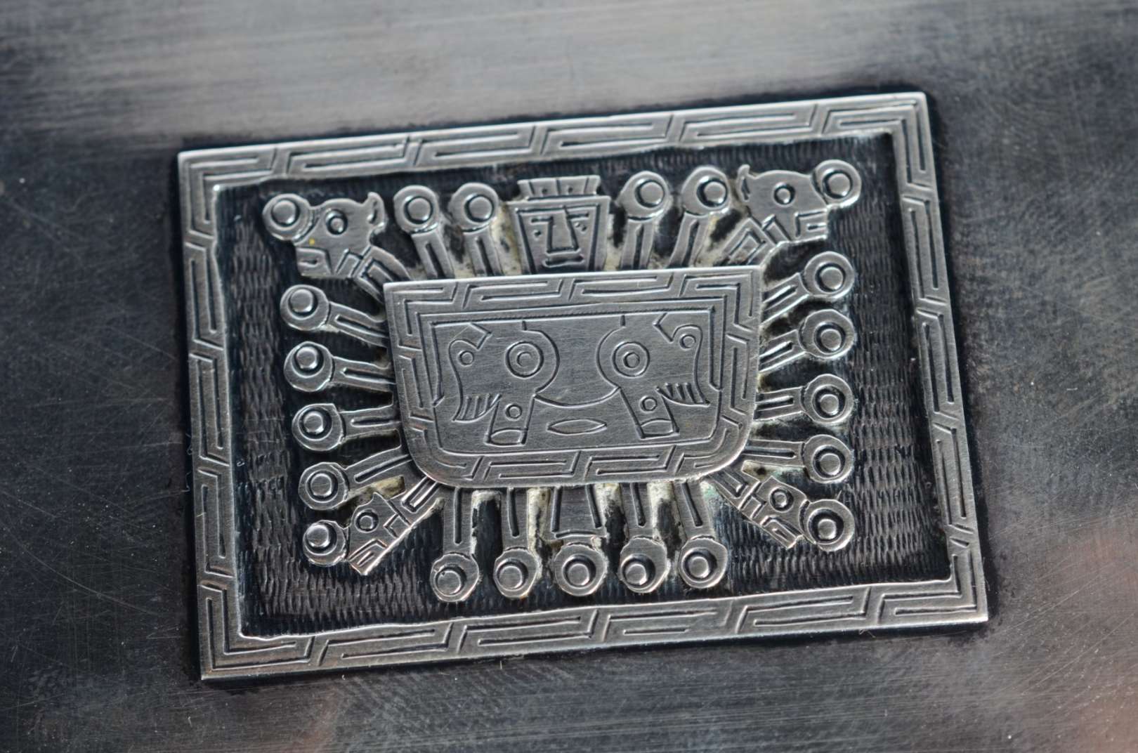 Barômetro/ termômetro Huger com caixa de madeira para pendurar na parede, e duas antigas chaves. Desgastes.