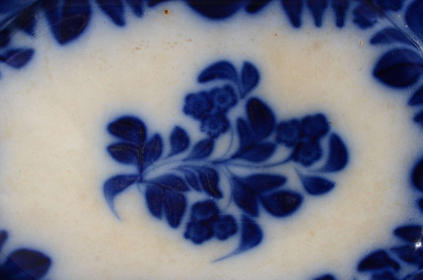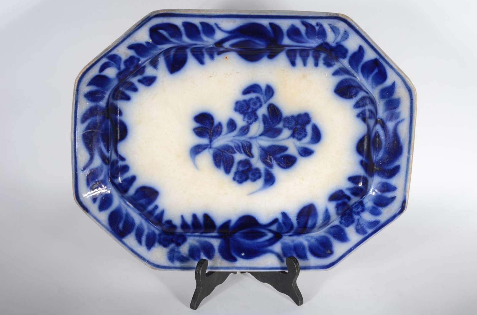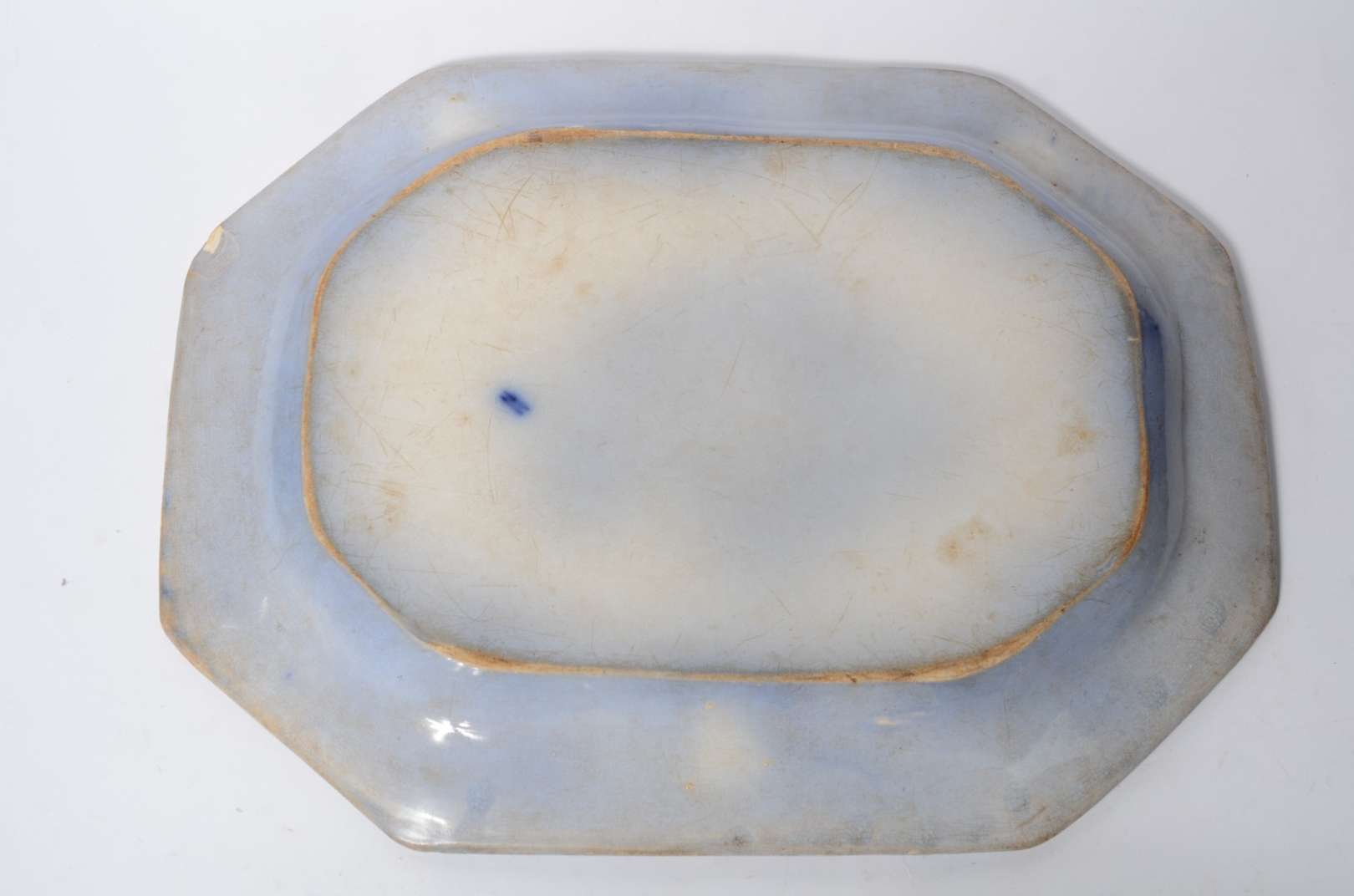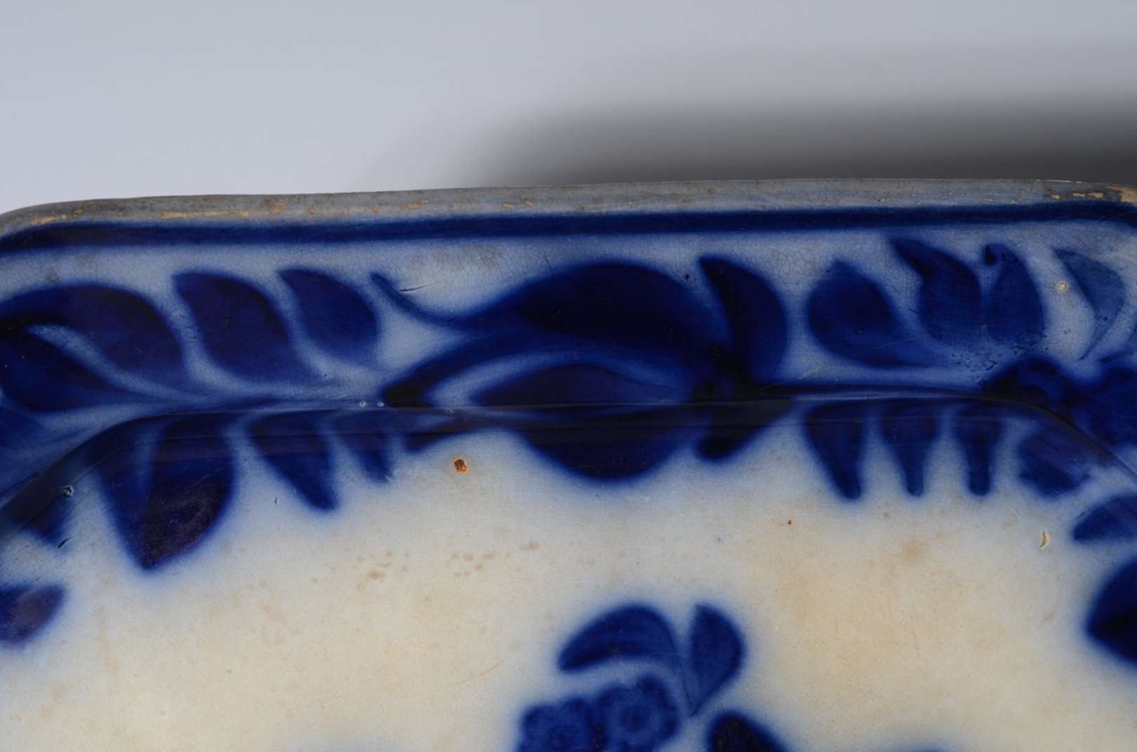 Três peças diversas, sendo: travessa de faiança inglesa "azul pombinho"; travessa na forma de peixe de faiança velho ...
