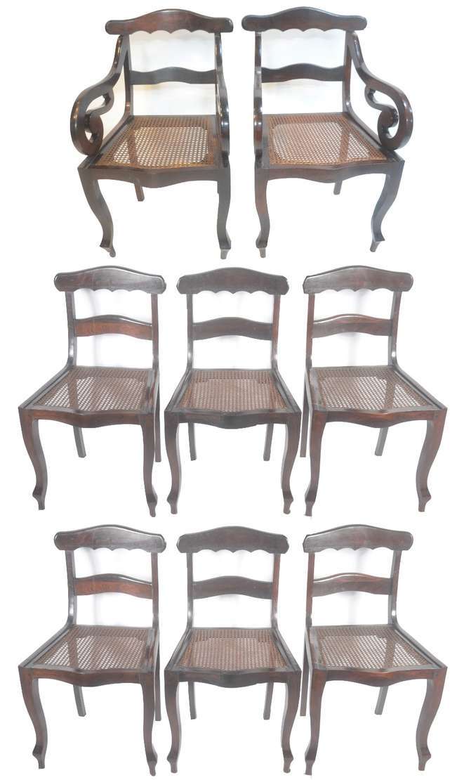 Belíssima cômoda Dona Maria de jacarandá com 2 gavetas menores e 4 gavetões, quinas com colunas torneadas, saia reco...