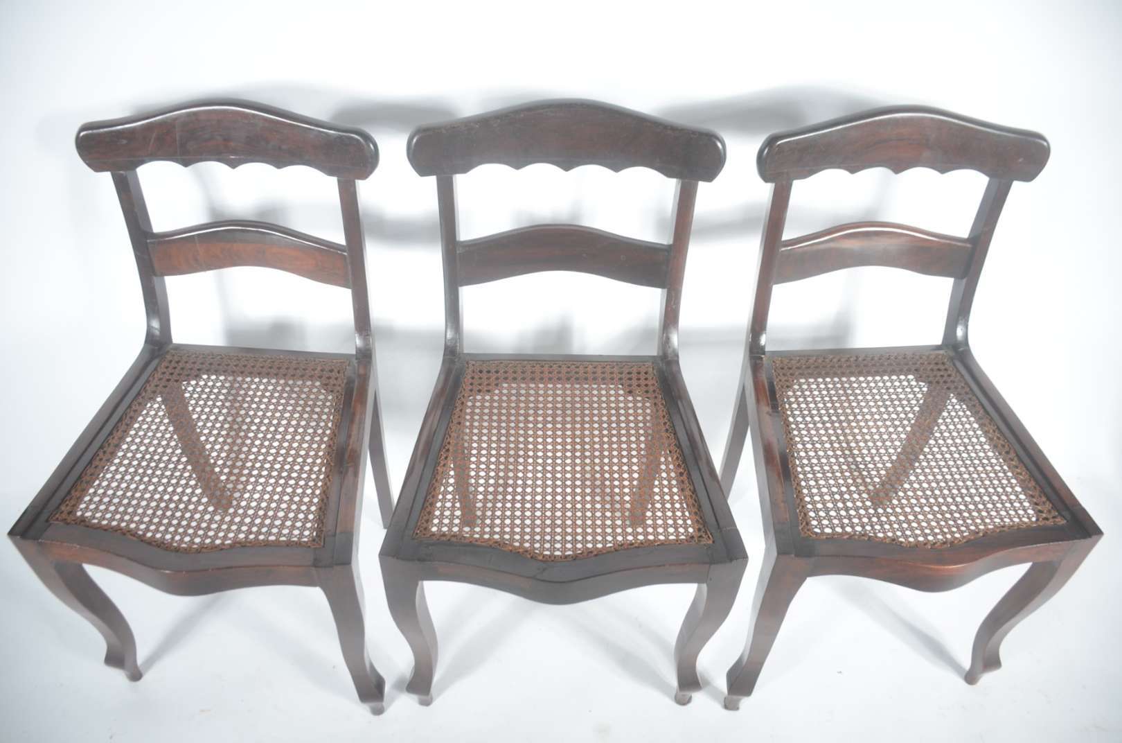Cadeira de balanço de madeira nobre, estilo austríaco Thonet, palhinha sintética no assento.