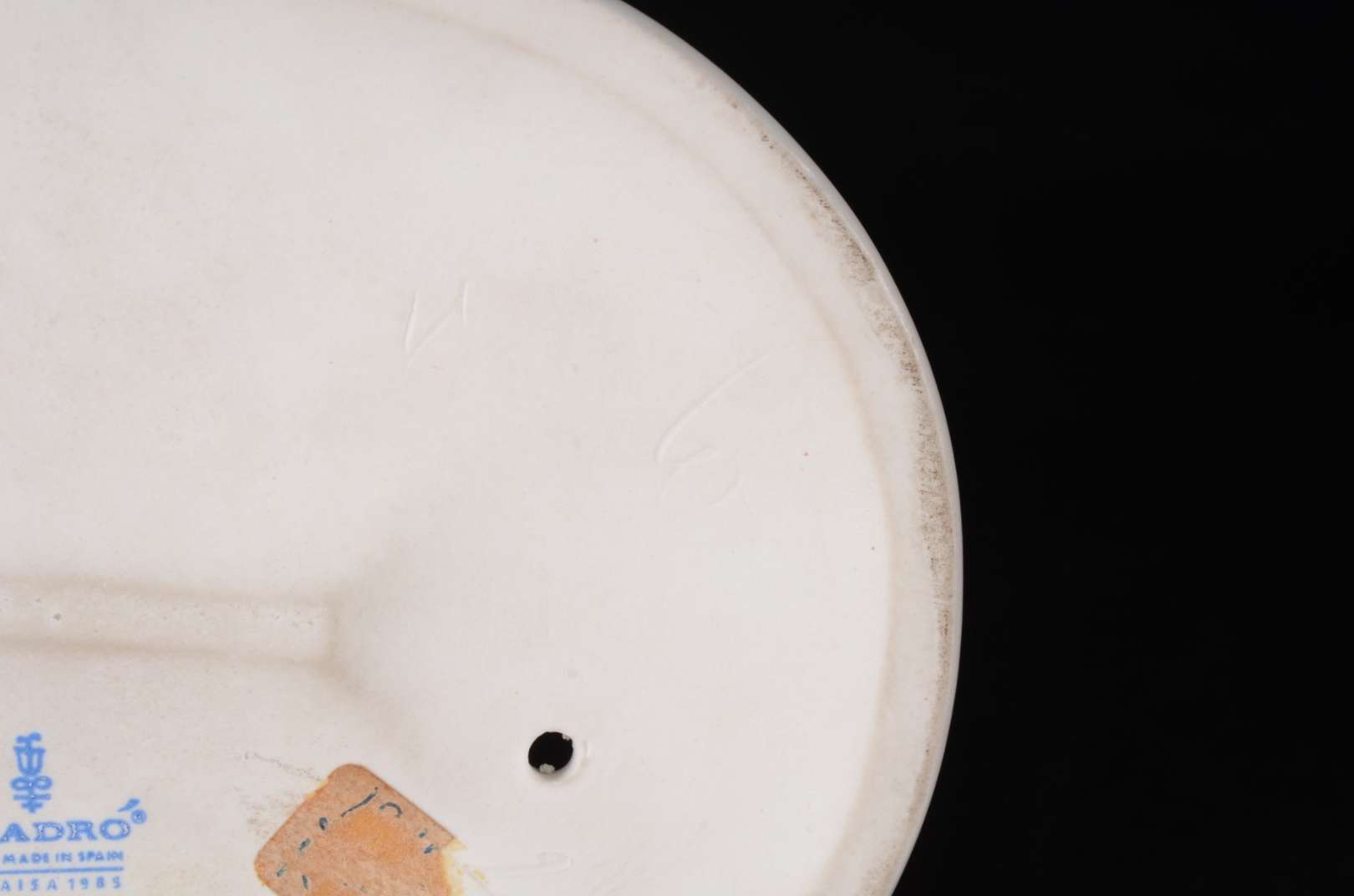 Quatro peças sacras, sendo: par de anjos de madeira entalhada e patinada (uma com asa colada); placa de bronze com fi...