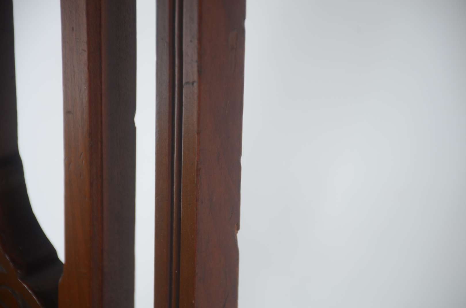 Aparador de madeira nobre, tampo retangular apoiado em coluna feitio "lira, terminando em quatro pernas recurvas.