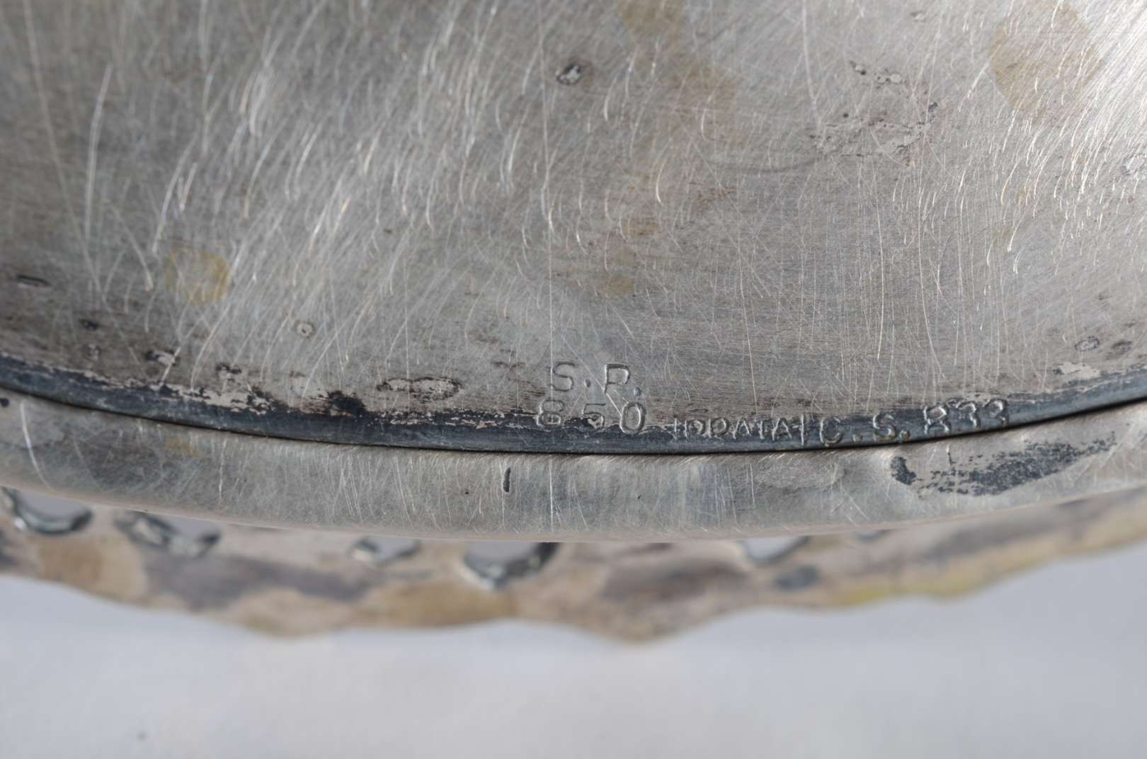 Baixela de jantar de metal prateado Saint James, composto de: sopeira, legumeira e 5 travessas. Total: 7 peças.