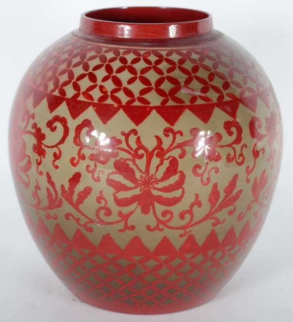 Vaso de cerâmica inglesa Bernard Moore, decorada com desenhos em vermelho brilhante. Circa 1900 - 1925.Bernard Moore ...
