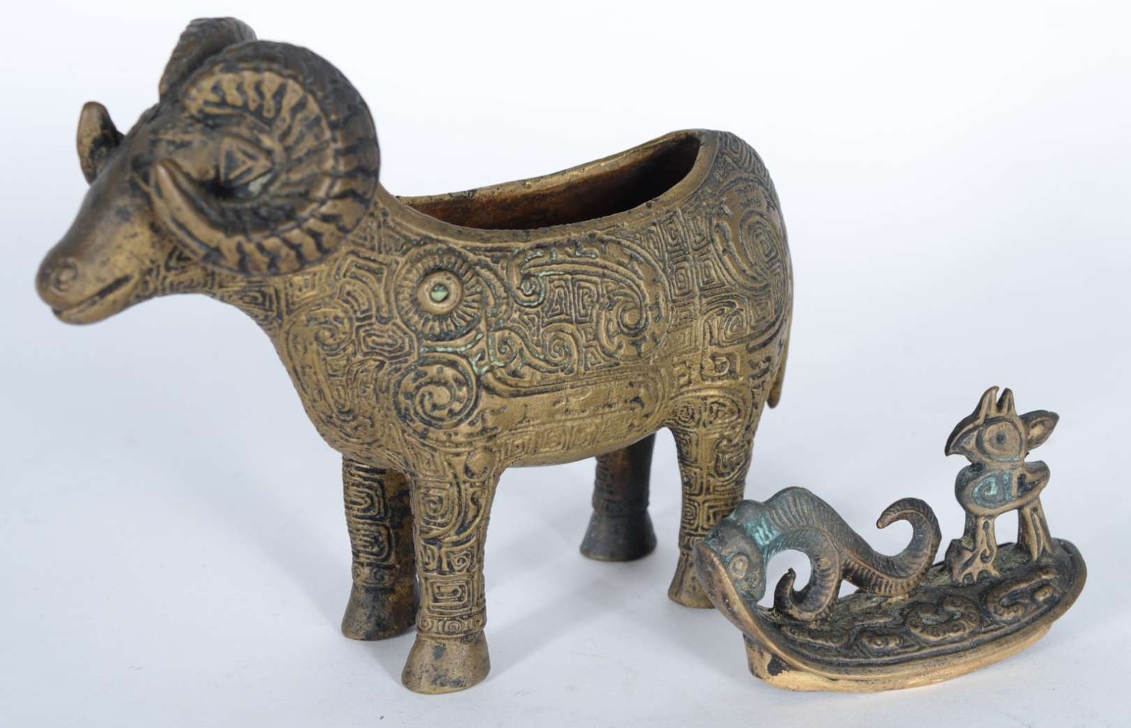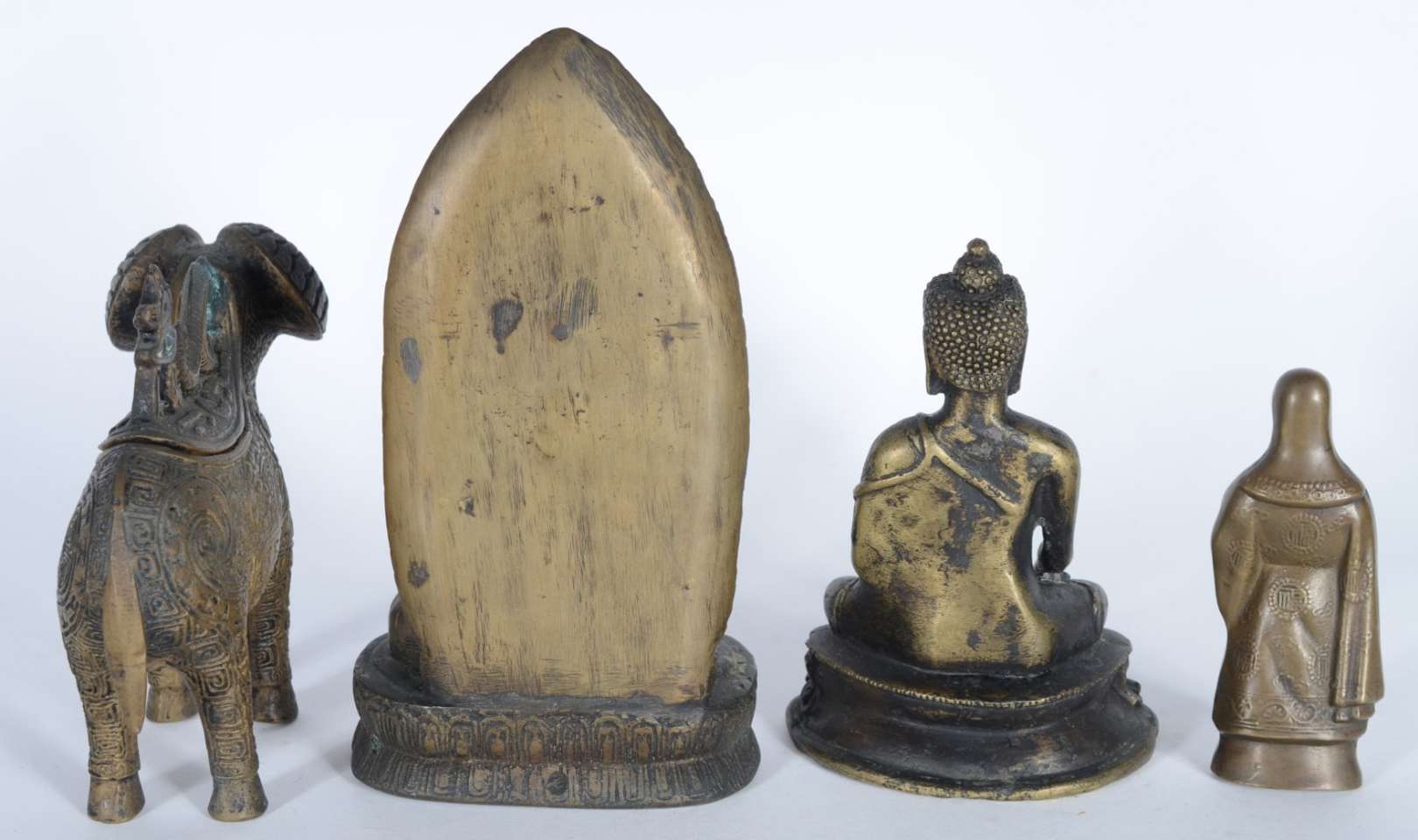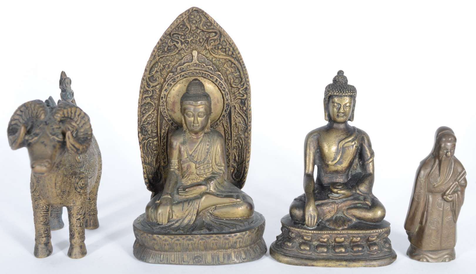 Escultura de marfim chines representando velho sábio sobre cervo, segurando um pessego na mão esquerda. Base de madeira.