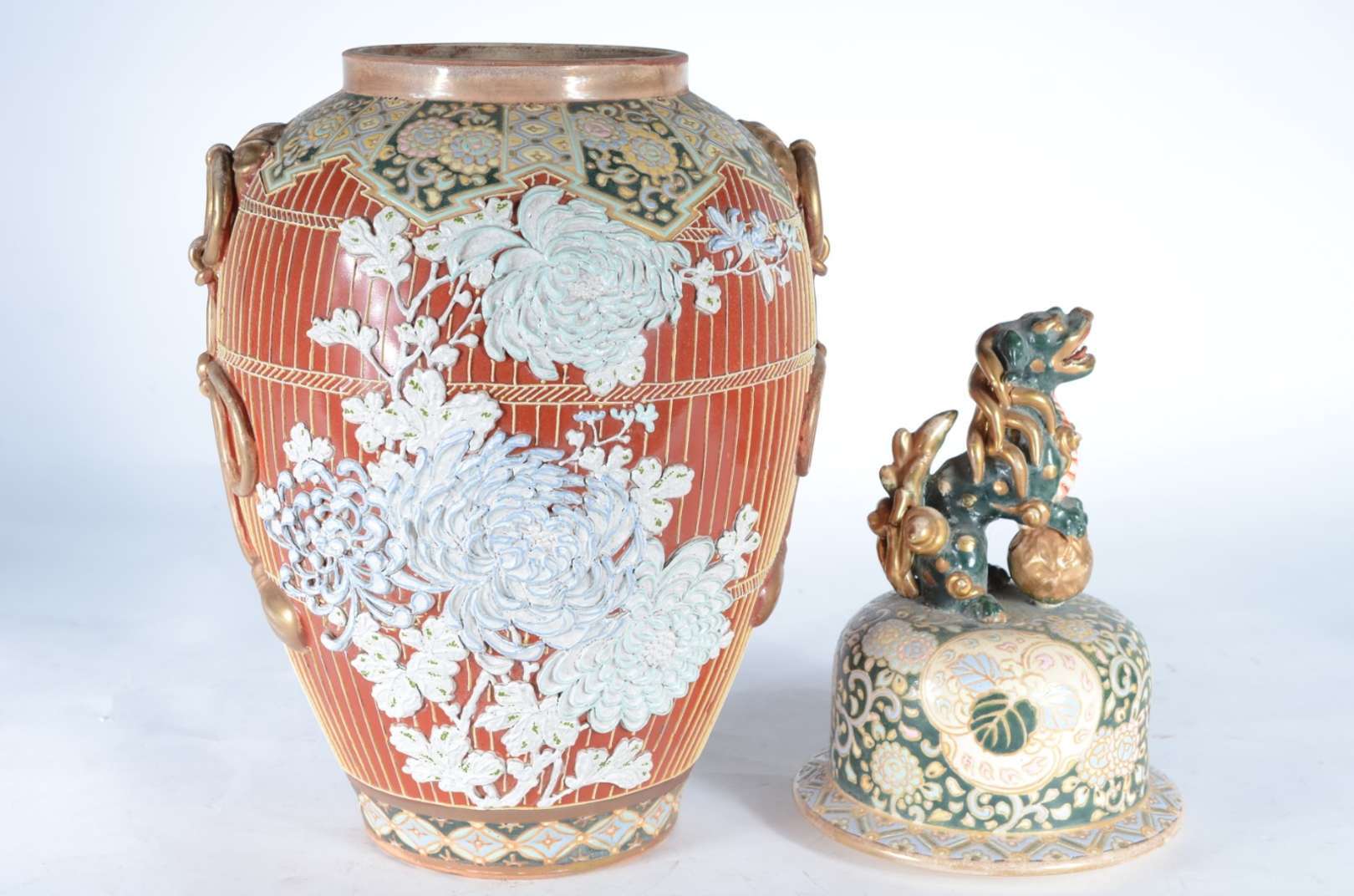 Duas peças de antigo bronze chinês, sendo: potiche e defumador, trabalhos em relevo.