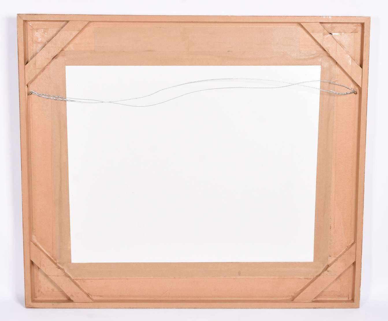 Medalhão de cerâmica Luis Salvador decorado com folhagens em tons de azul, verde e amarelo.