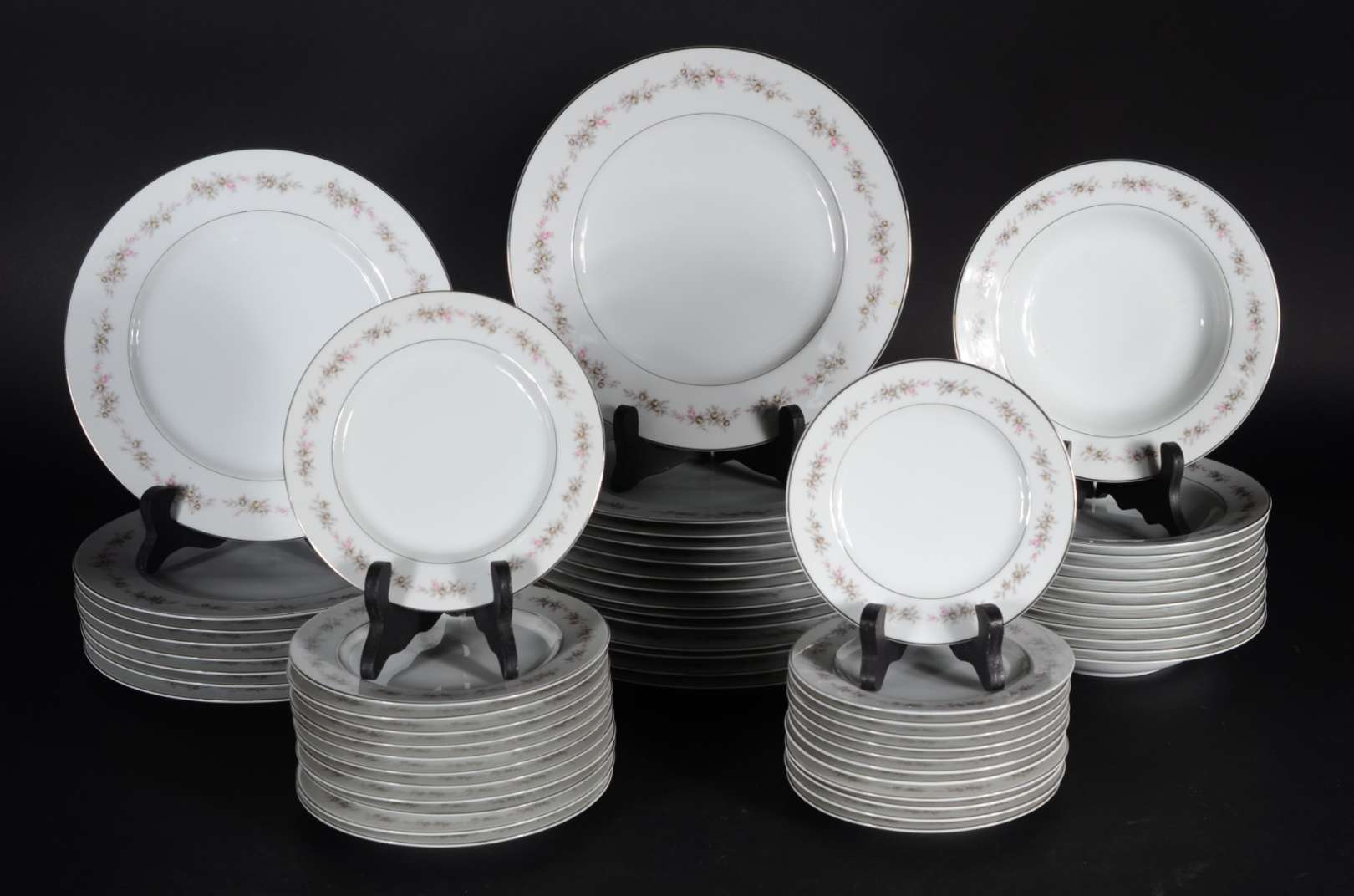 Aparelho de jantar de porcelana Saint James, composto de: 12 pratos rasos, 12 pratos de sobremesa e 8 xícaras de café...