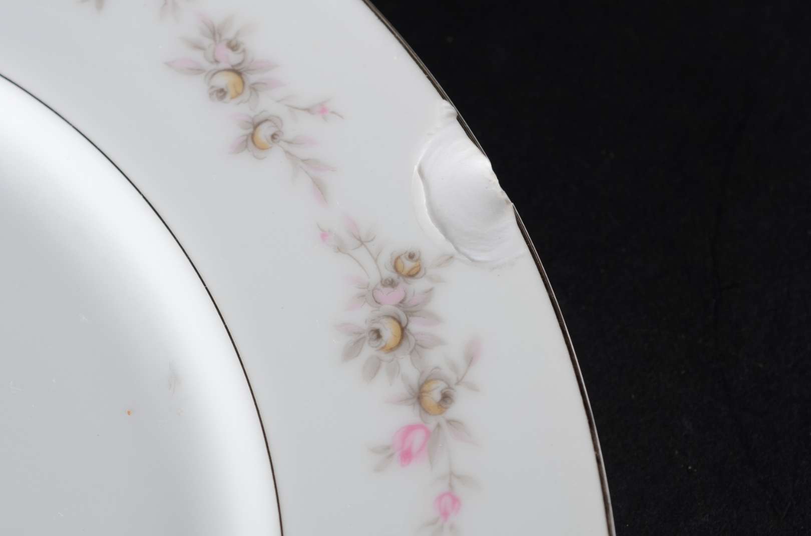 Travessa para peixe de porcelana francesa A.L.Garraux, com placa vazada sobreposta, decoração floral e borboletas em...