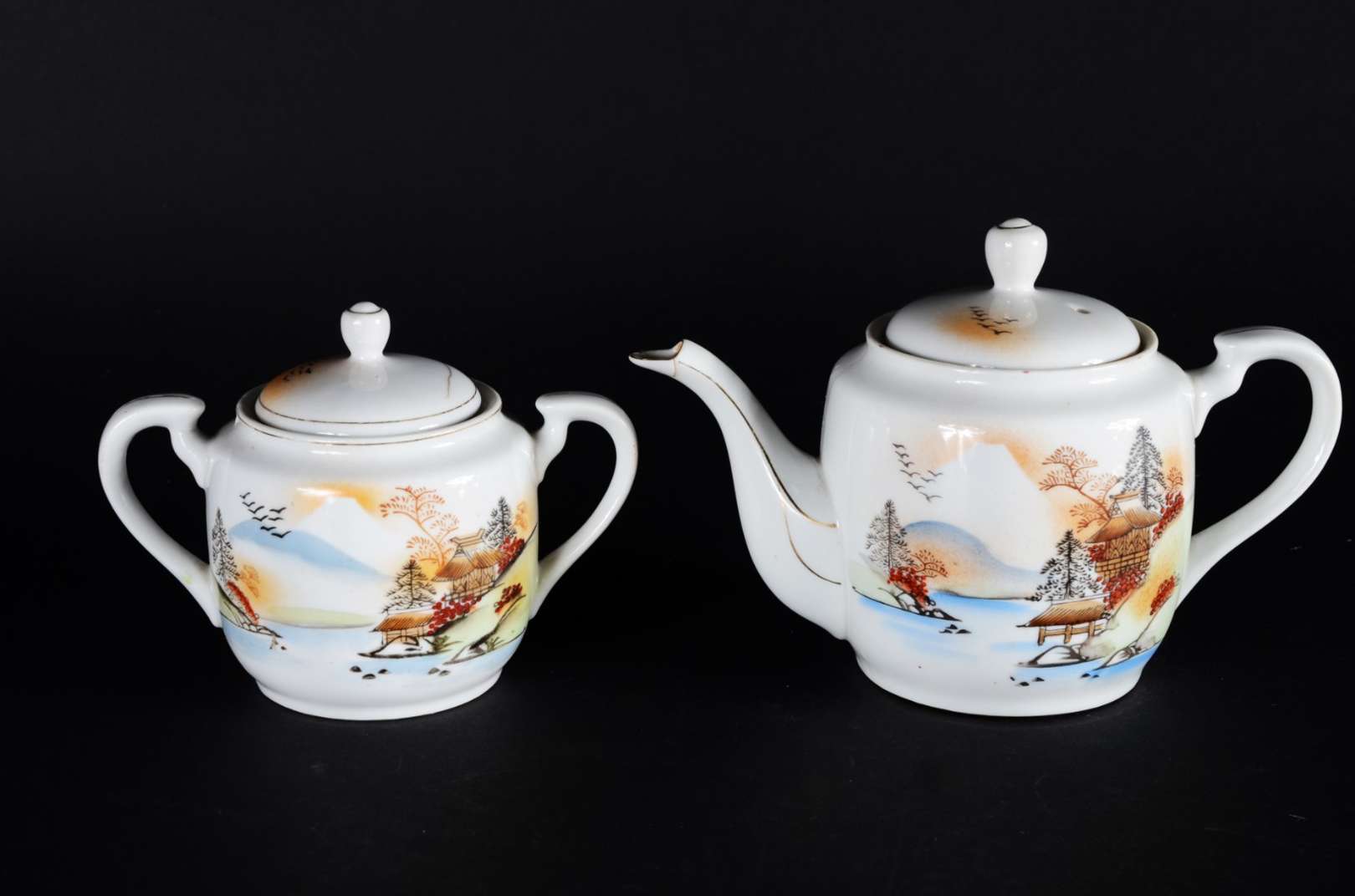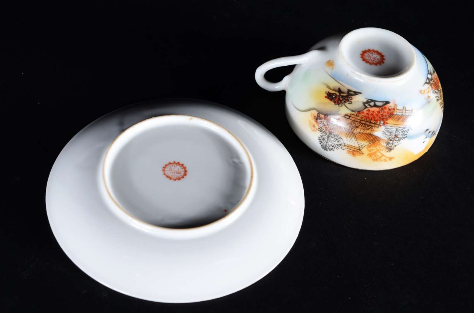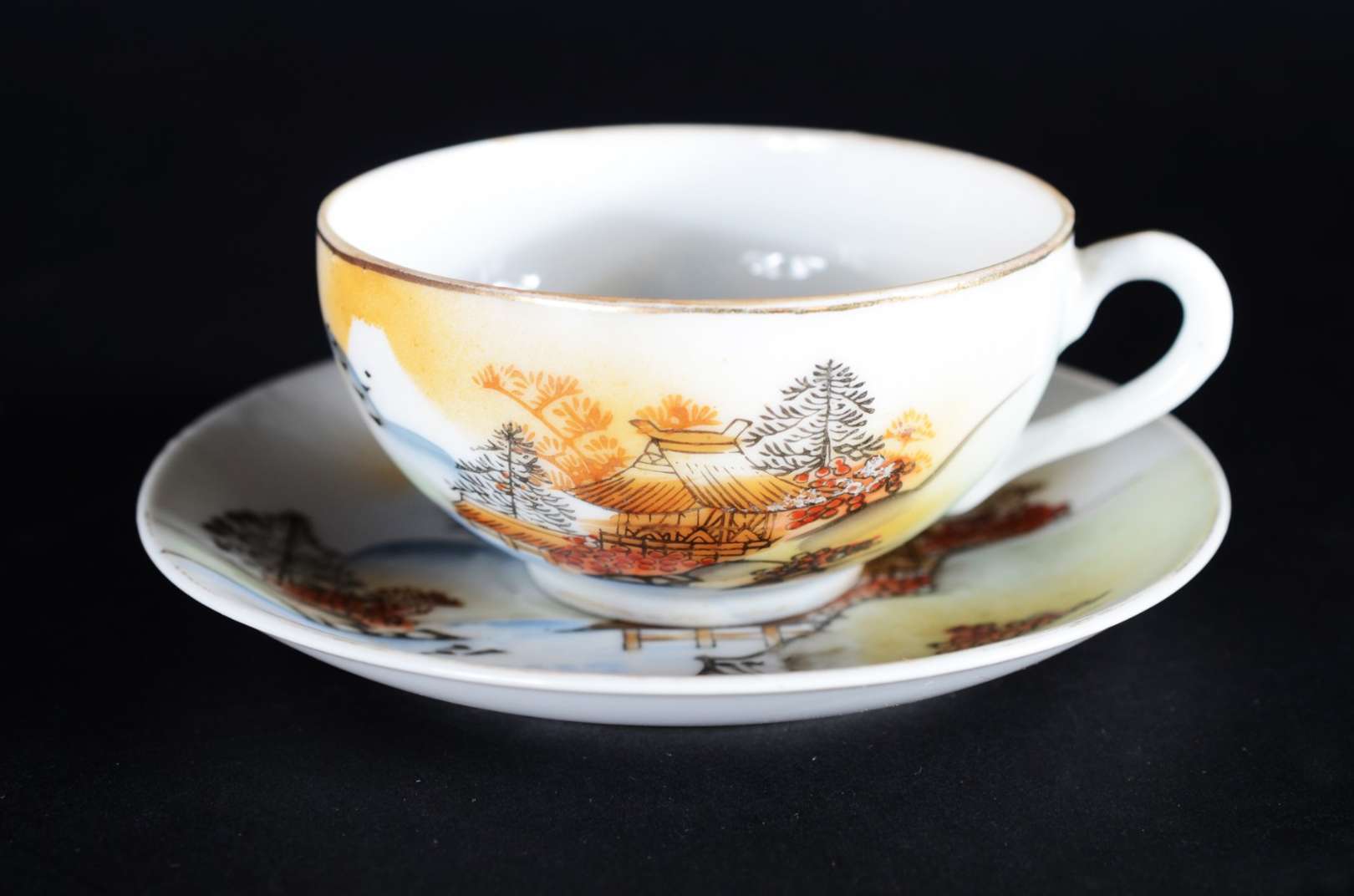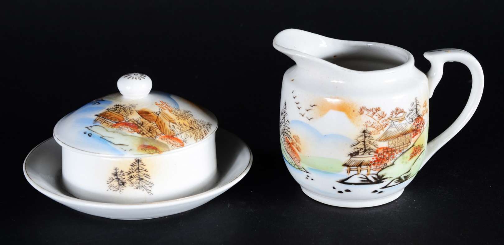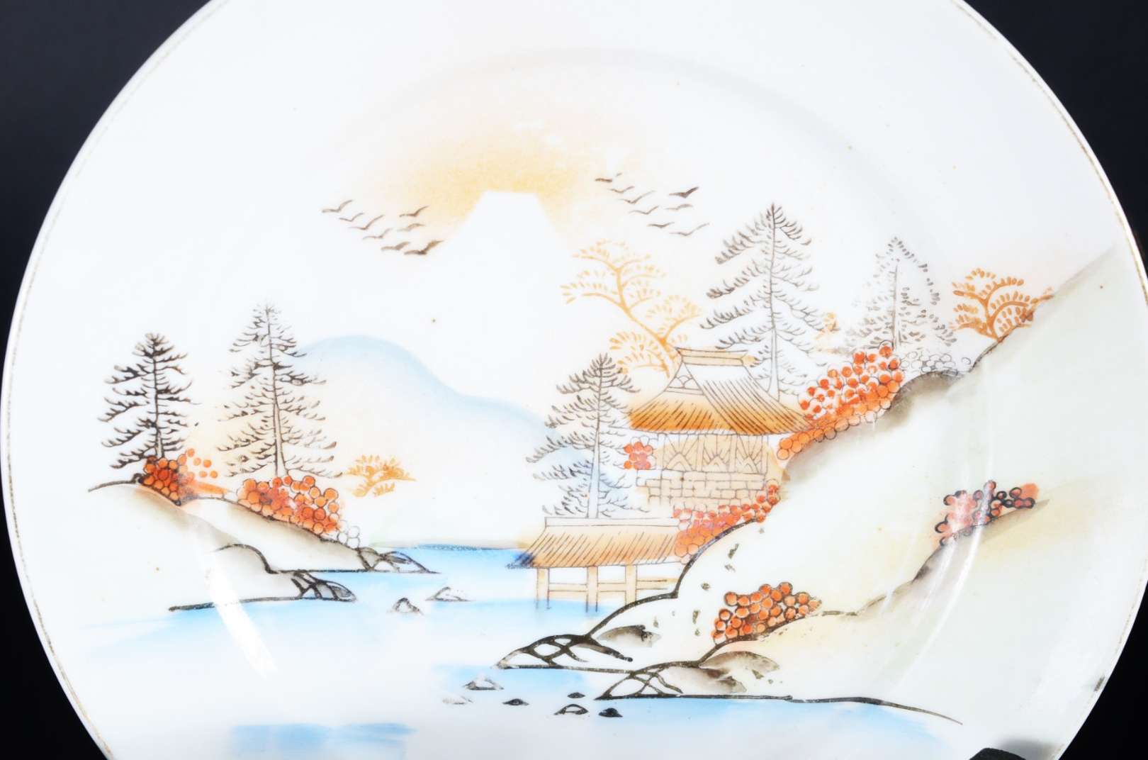 Serviço de jantar de porcelana japonesa "Three Crown", composto de : 22 pratos rasos, 12 pratos fundos, 12 pratos de ...