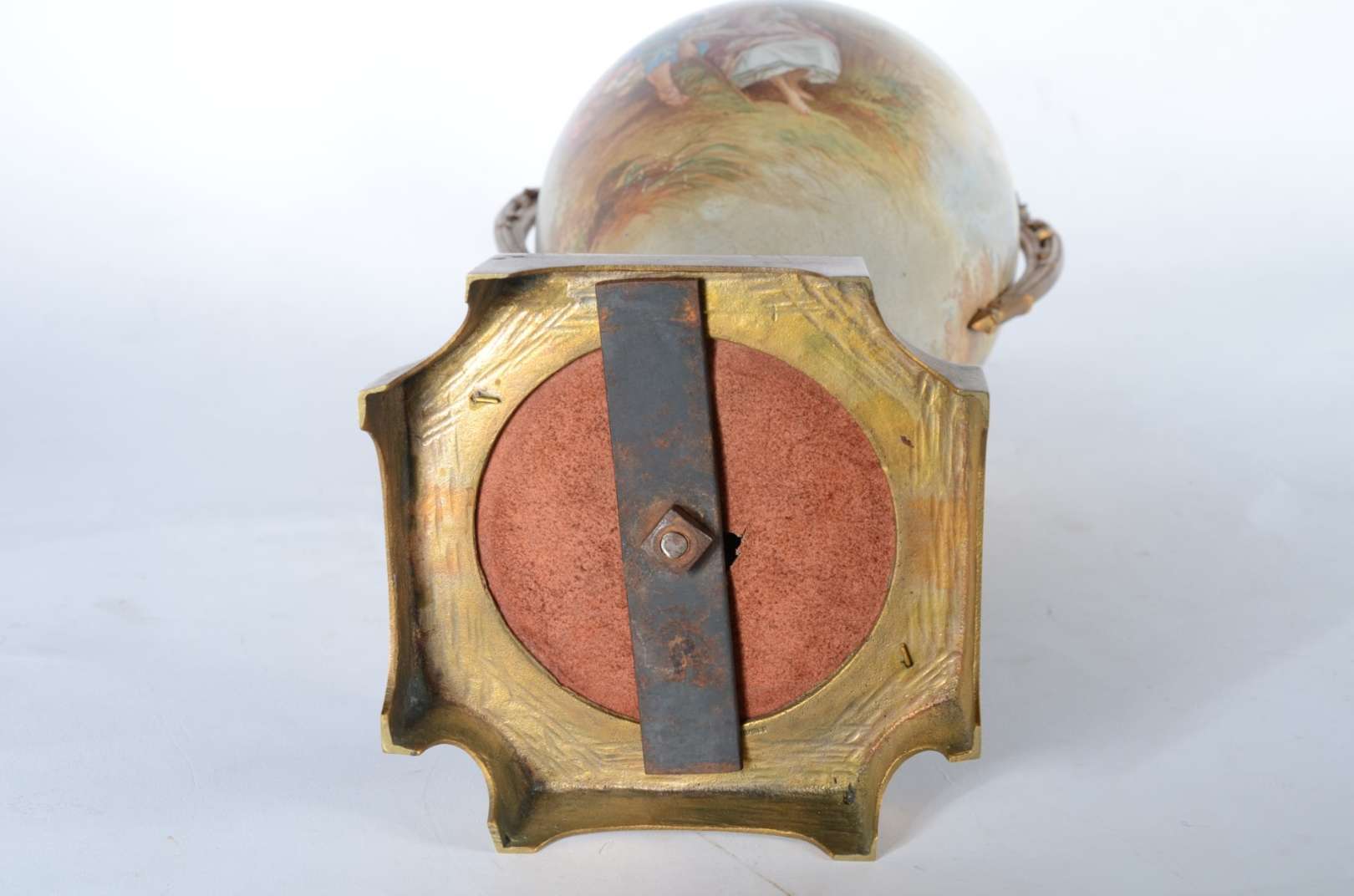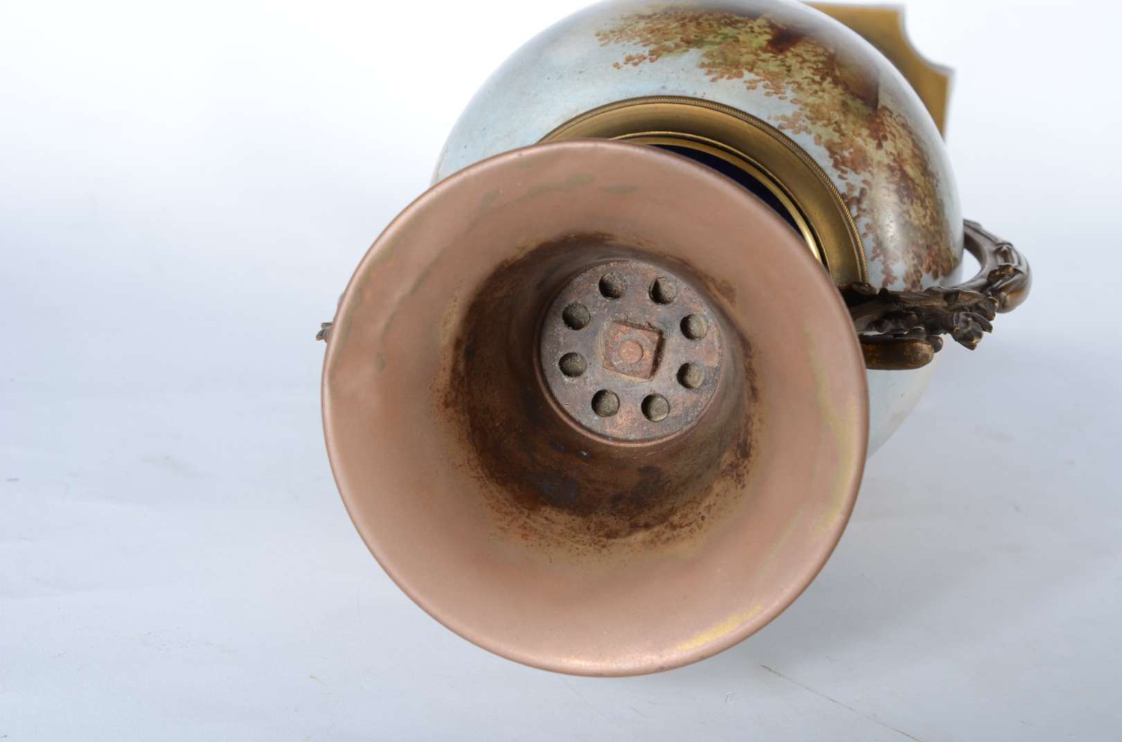 Cachepot de porcelana oriental decorado com cena romântica em policromia, pássaro e guirlandas florais. Acompanha pea...
