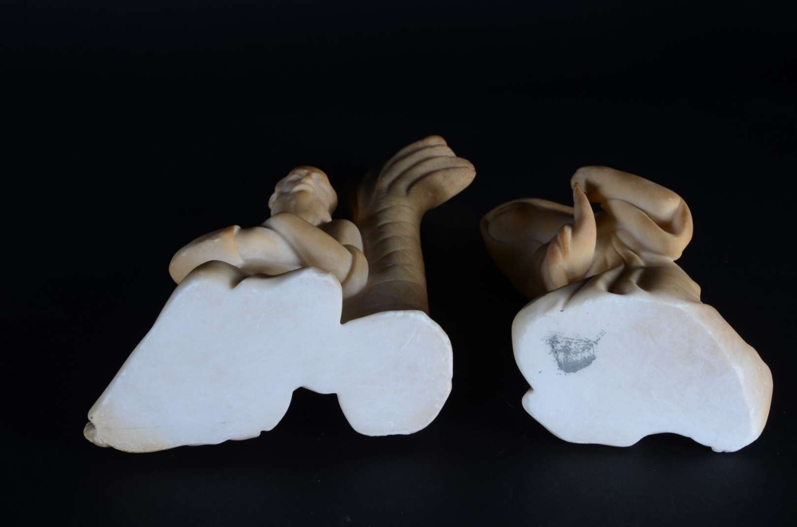 Duas esculturas, sendo uma de bronze assinada Masumi; outra representando orixá (pequenos desgastes).