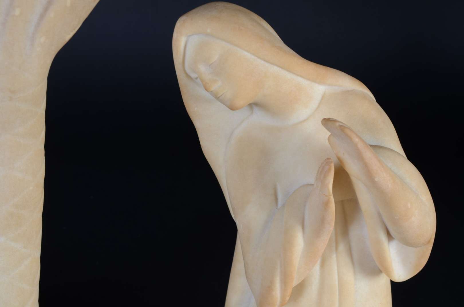 Crucifixo de madeira policromada com figura de Cristo ricamente entalhada. Século XIX.