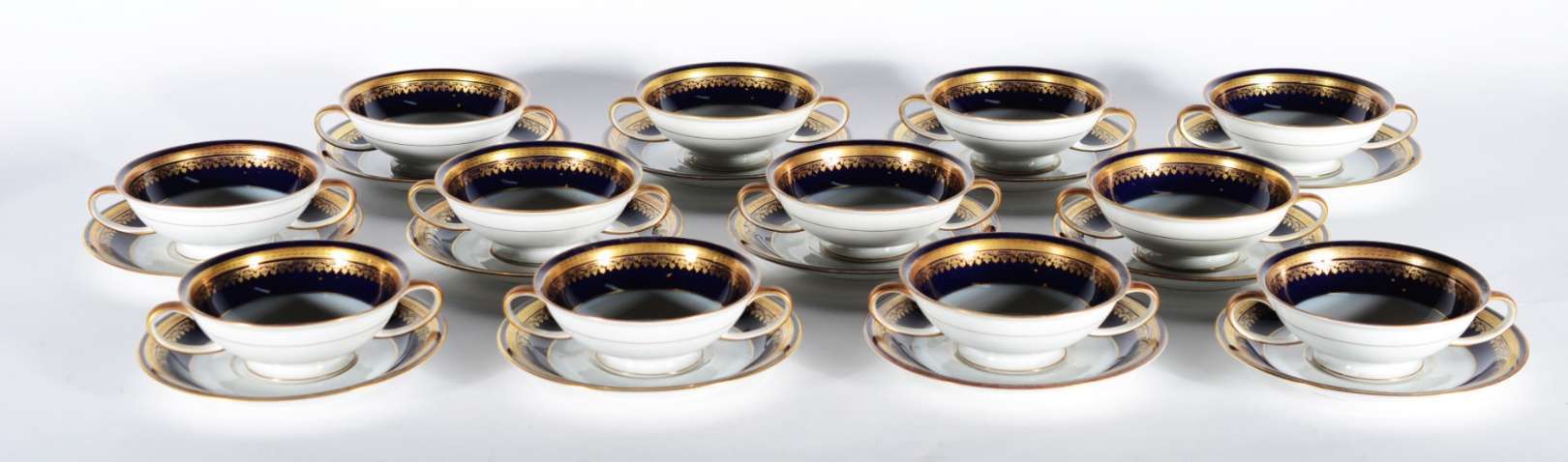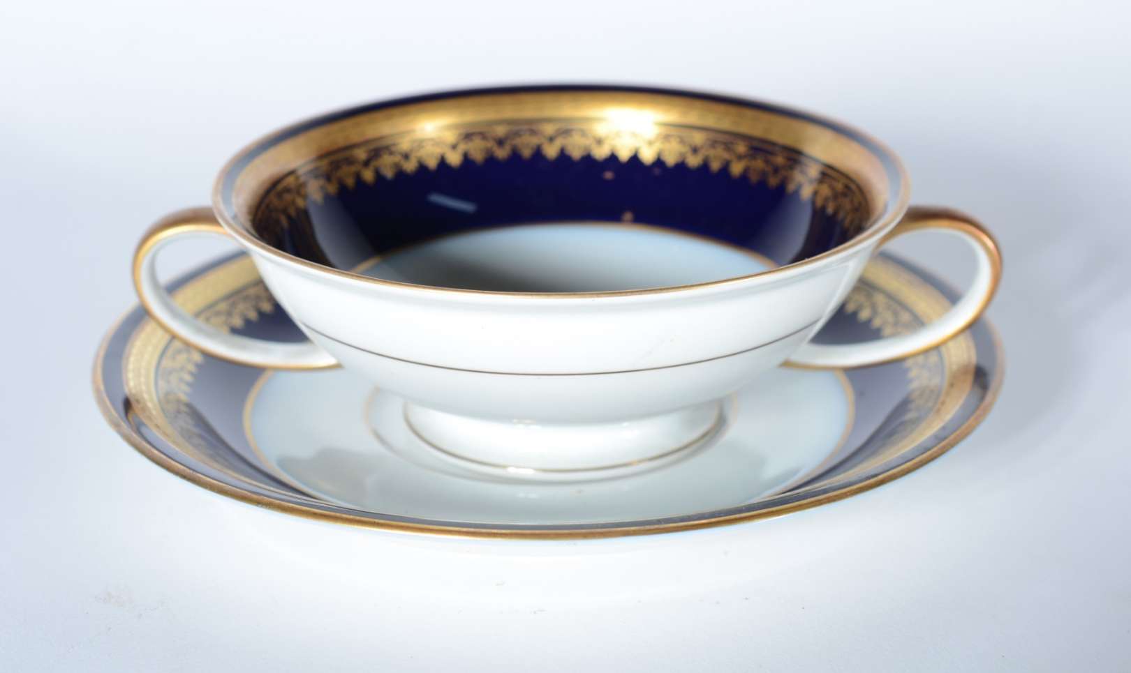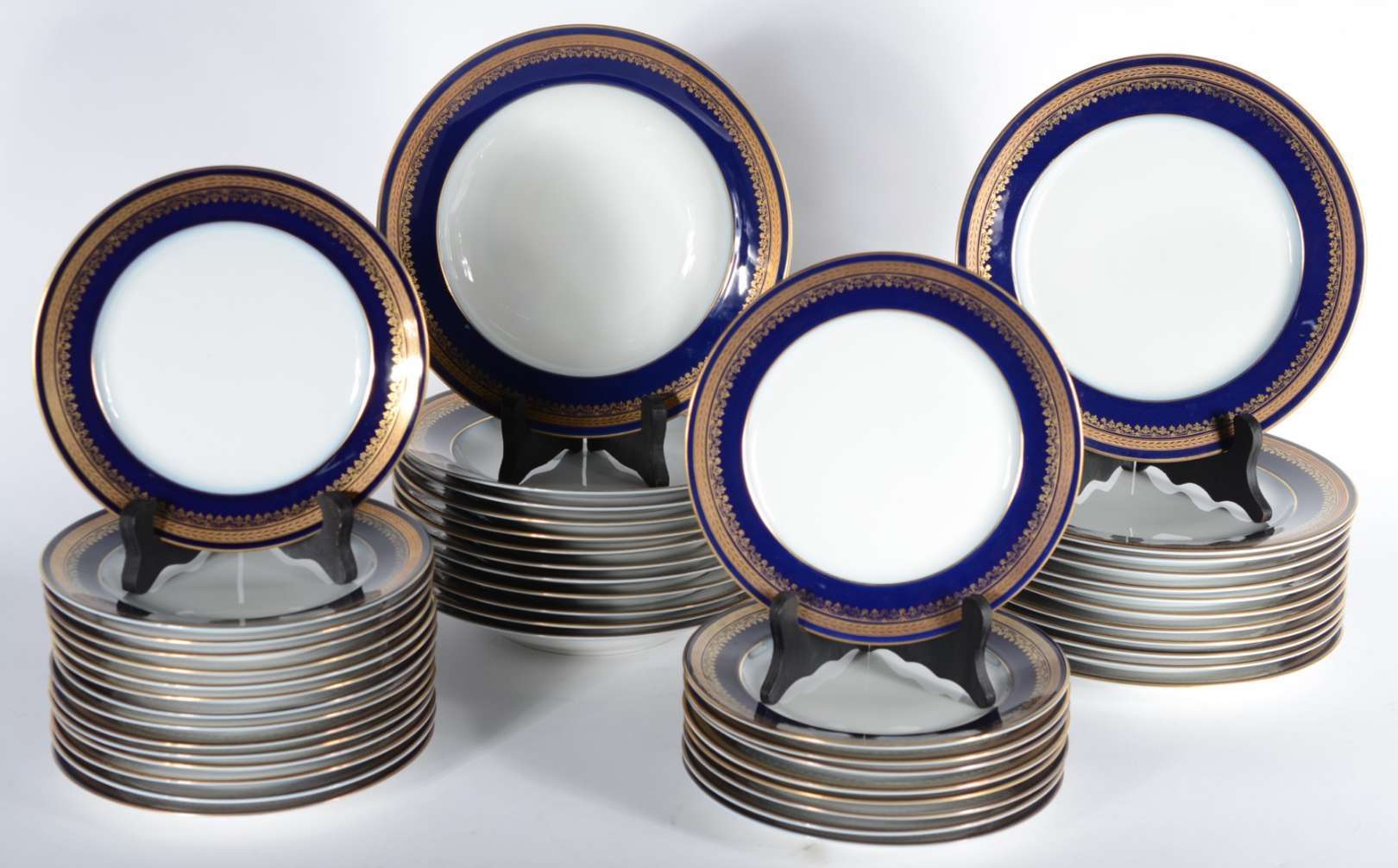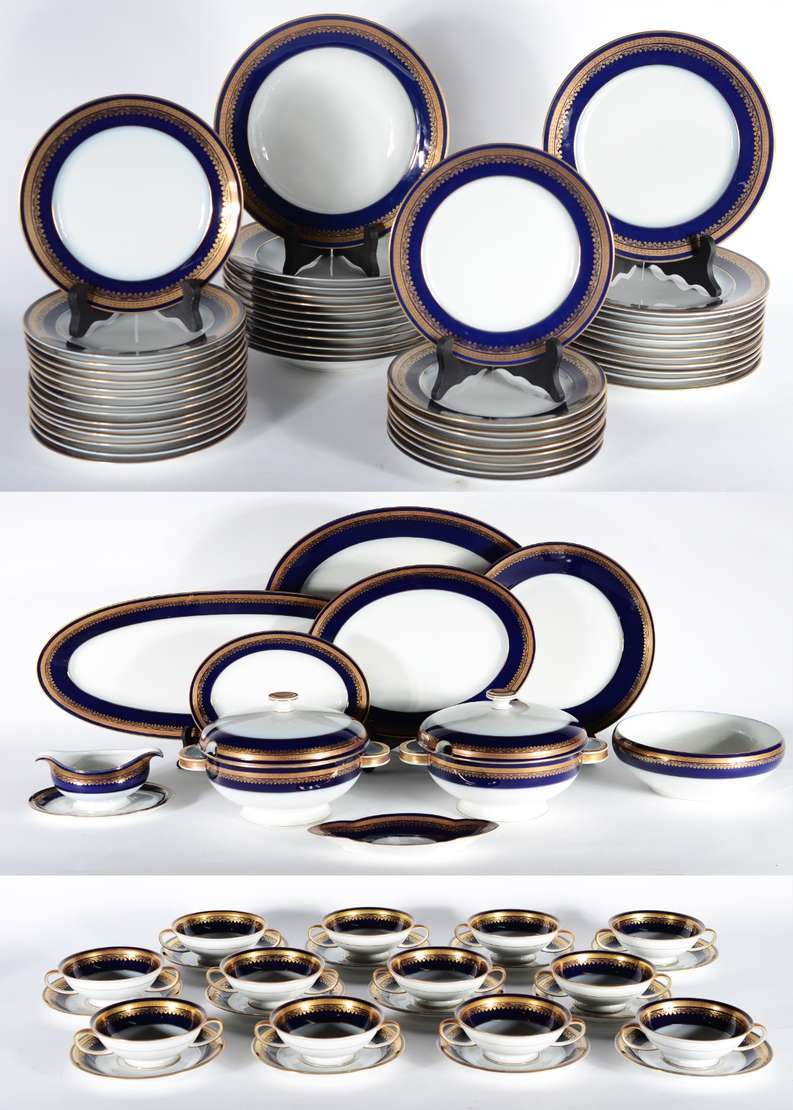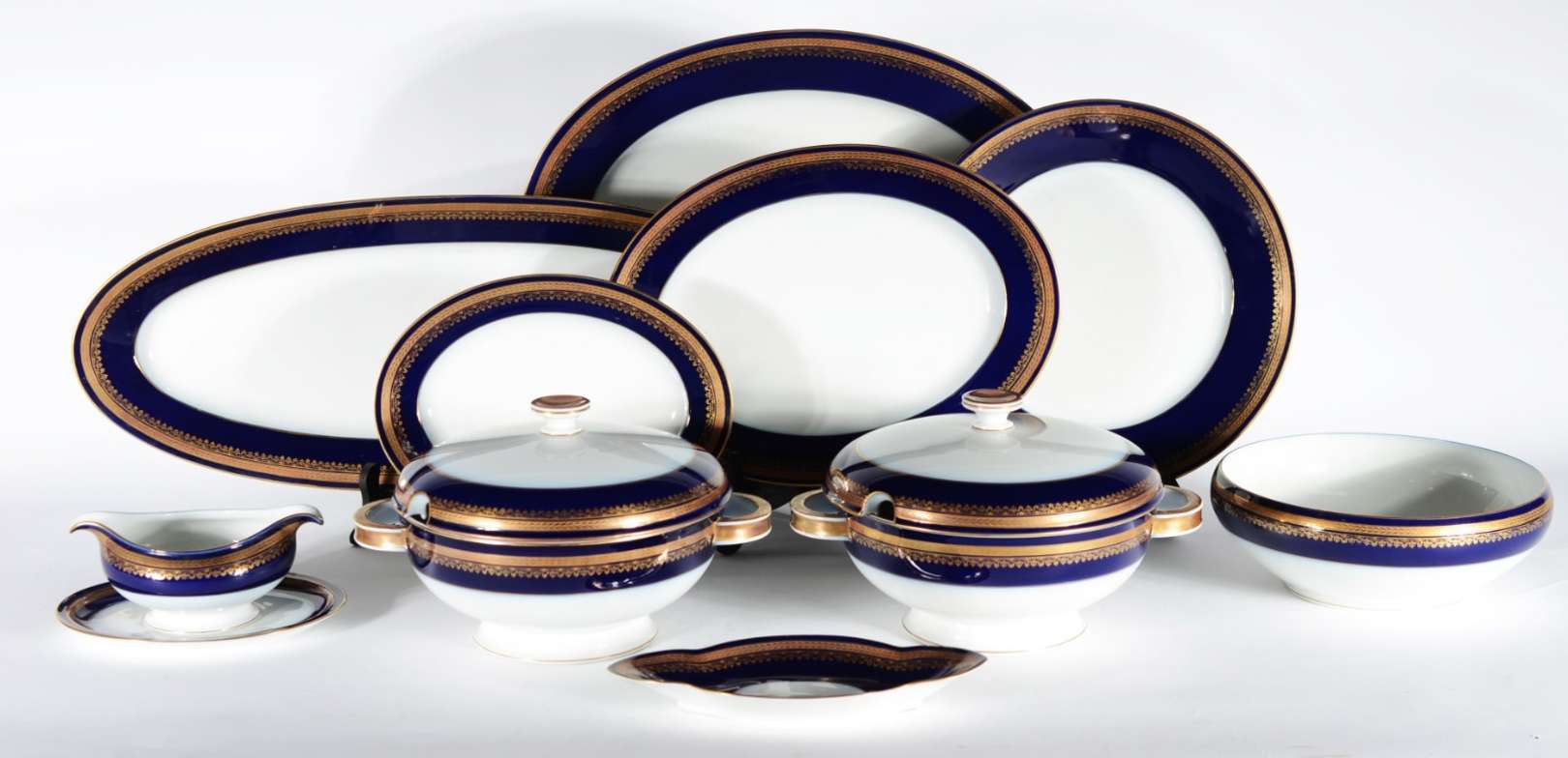 Serviço de jantar de porcelana japonesa "Three Crown", composto de : 22 pratos rasos, 12 pratos fundos, 12 pratos de ...