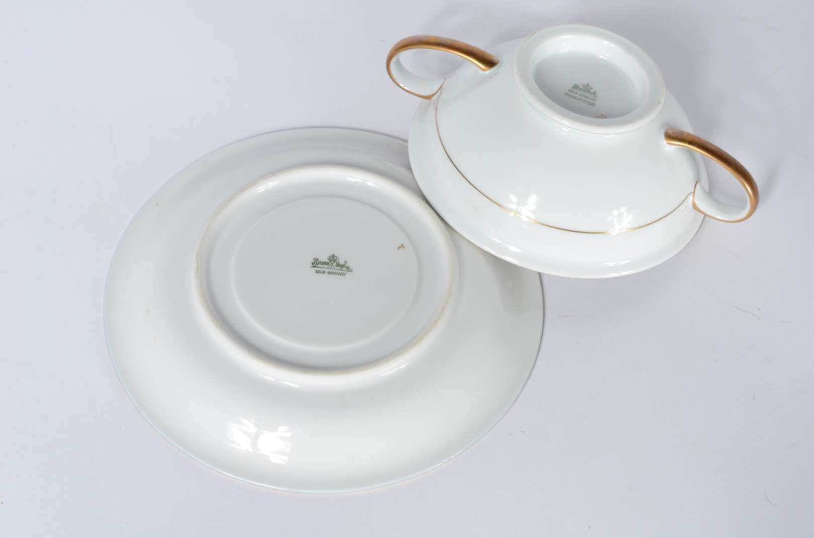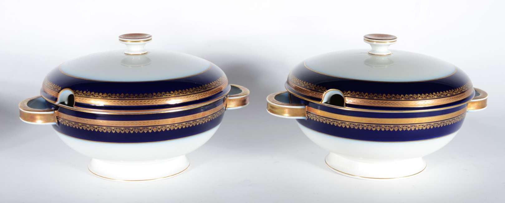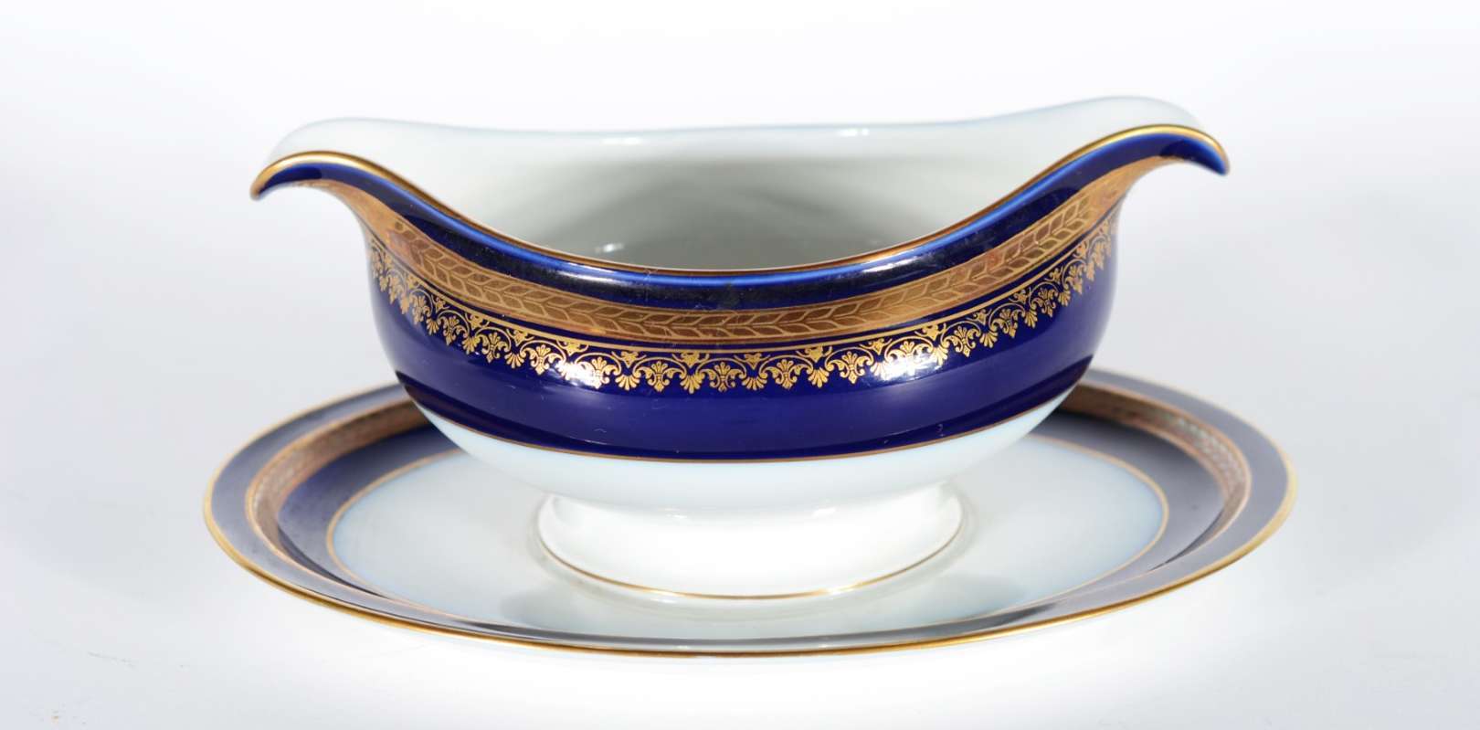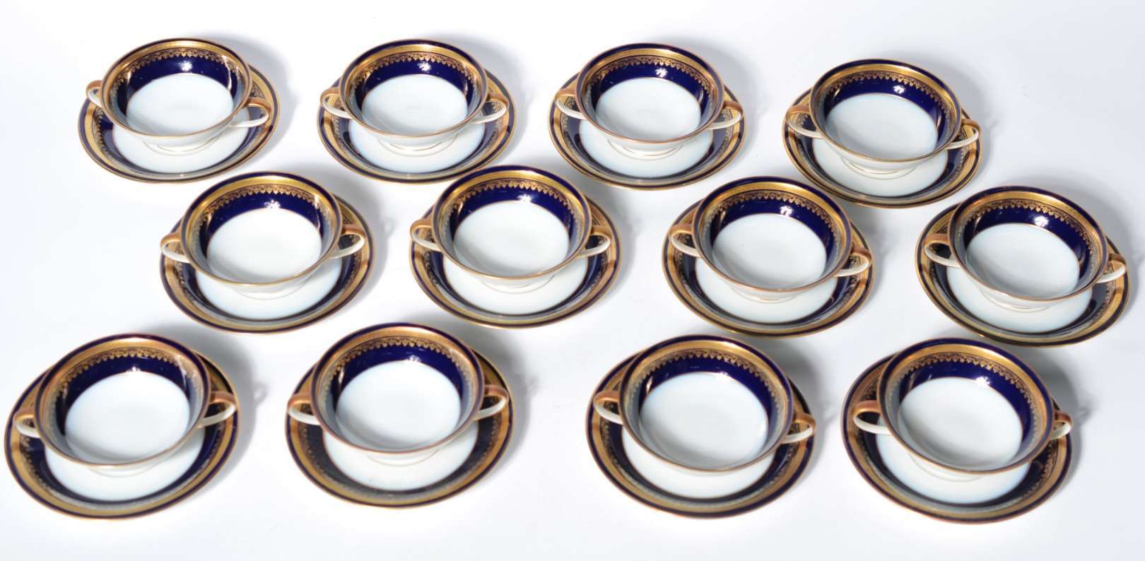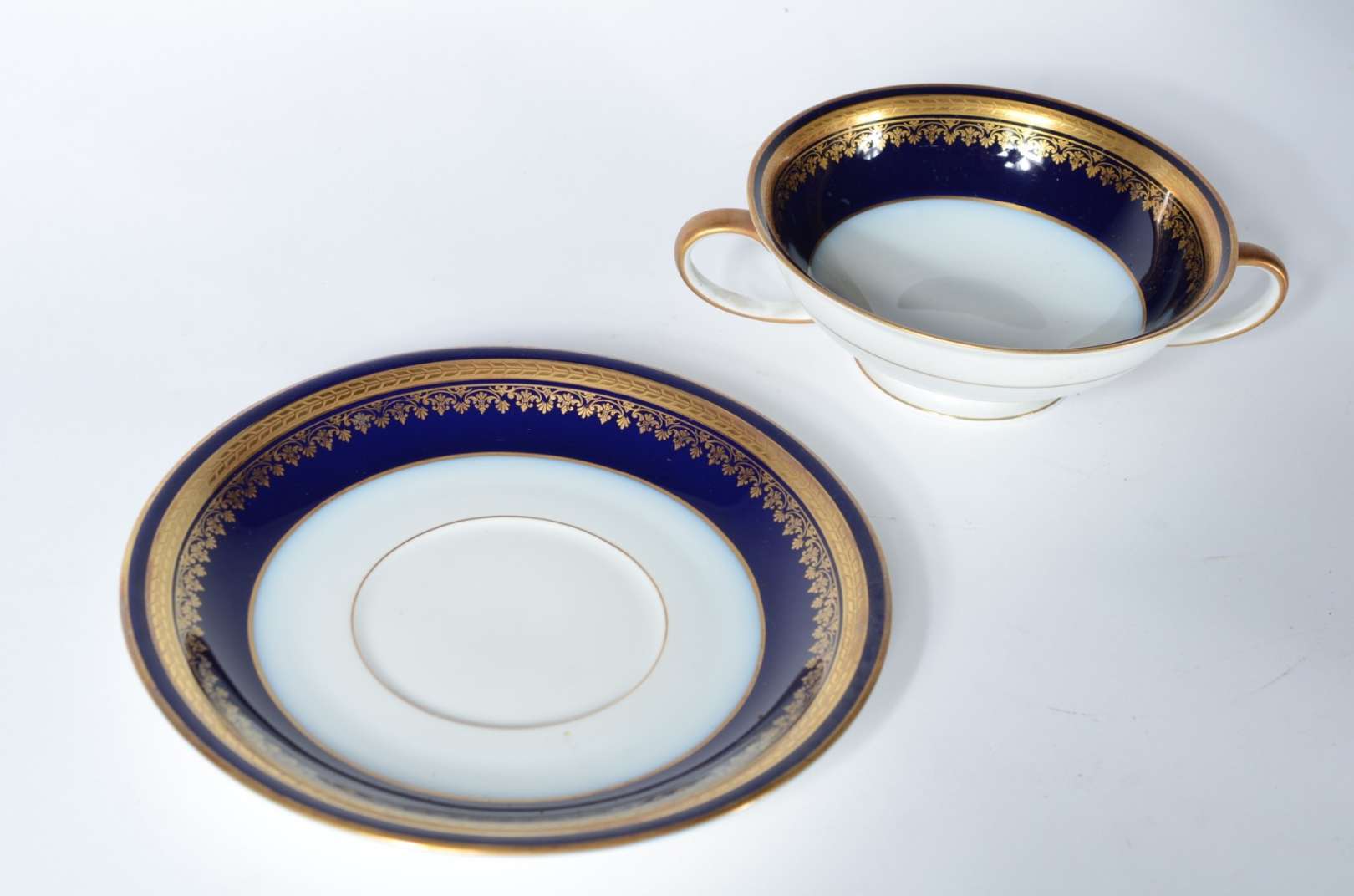 Serviço de jantar de porcelana japonesa "Three Crown", composto de : 22 pratos rasos, 12 pratos fundos, 12 pratos de ...